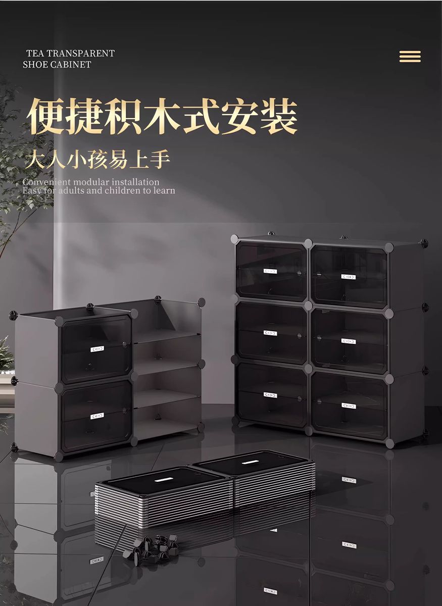 Fantasy shoe cabinet storage cabinet door shoe storage integrated wall shoe rack transparent shoe box storage box light luxury tea transparent door large capacity 2 rows 10 layers of gray (approximately 40 pairs of shoes)