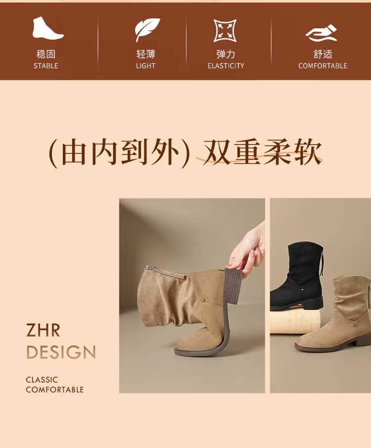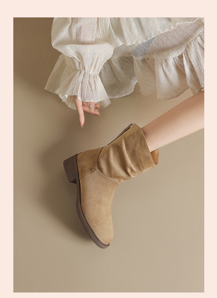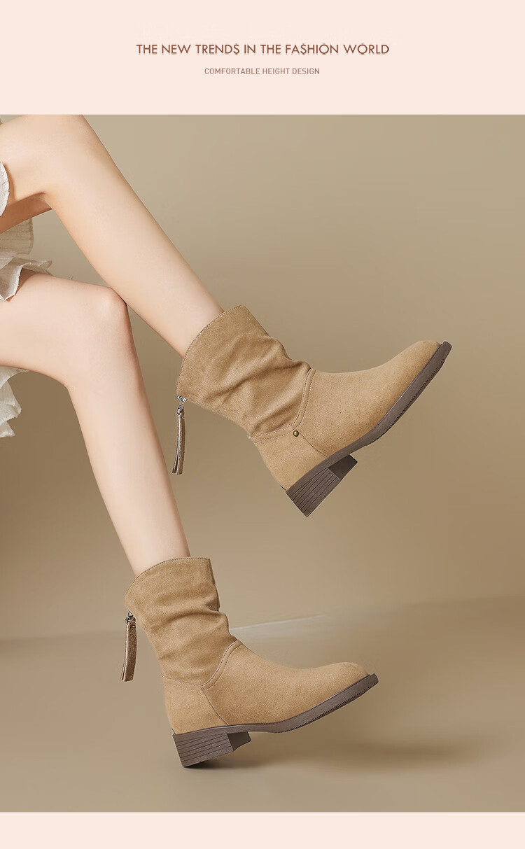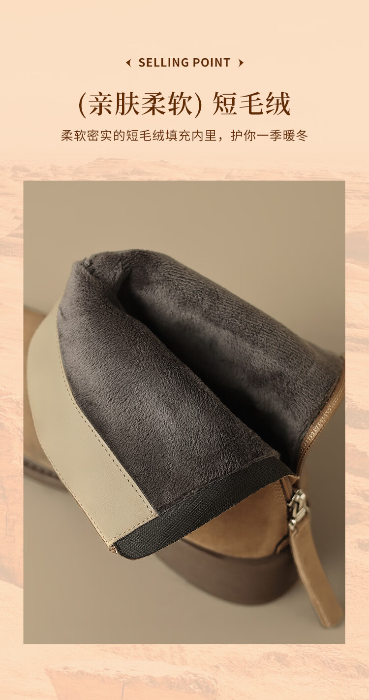 ZHR sheep cashmere elastic boots for women 2025 winter new style plus velvet retro short boots to keep warm and comfortable pile boots khaki 35