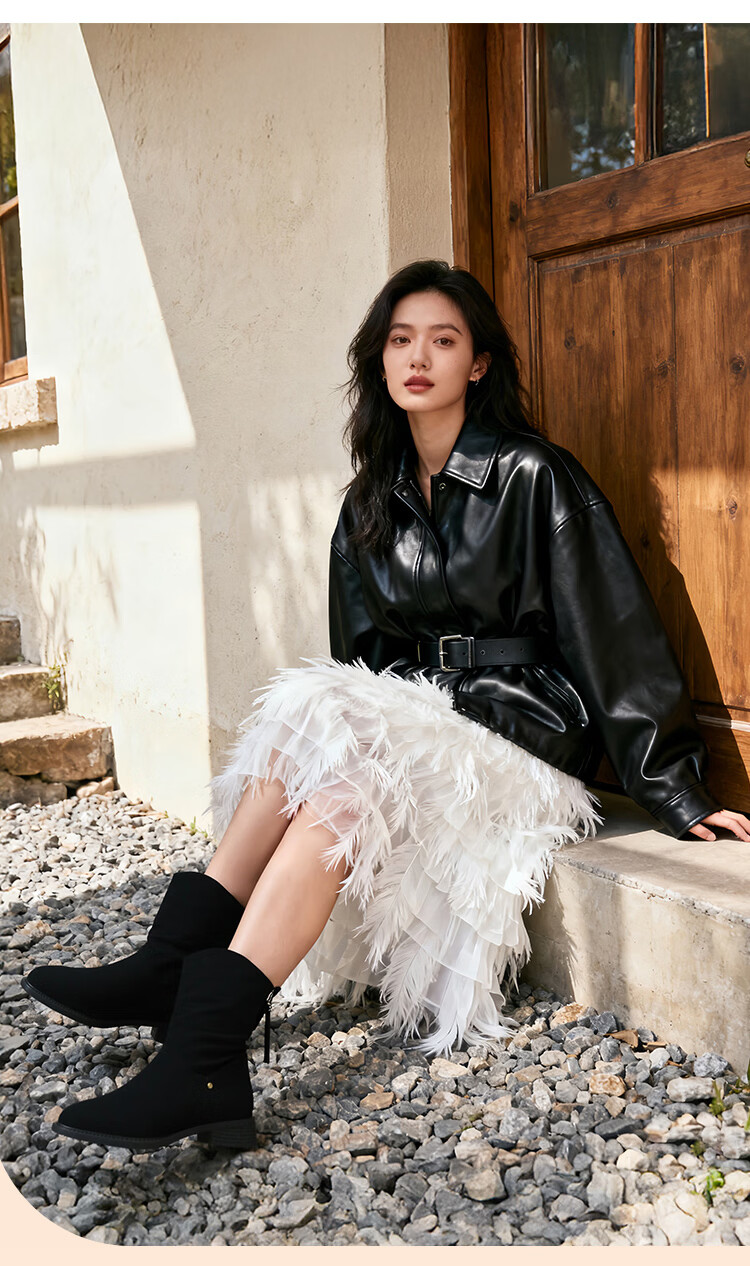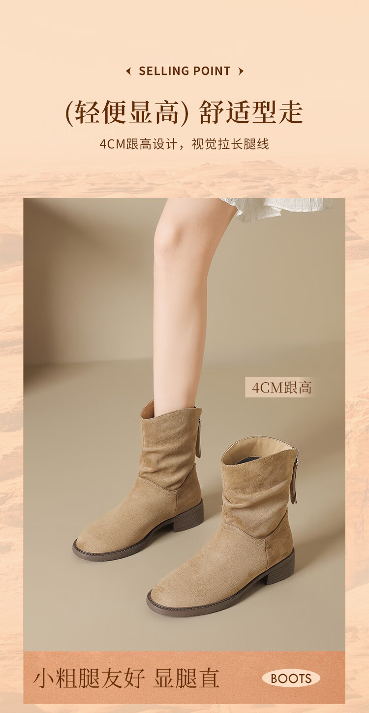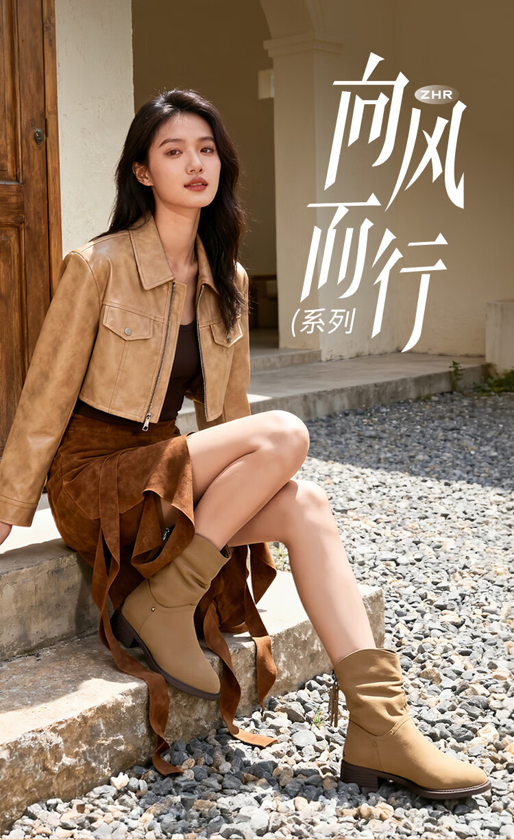 ZHR sheep cashmere elastic boots for women 2025 winter new style plus velvet retro short boots to keep warm and comfortable pile boots khaki 35
