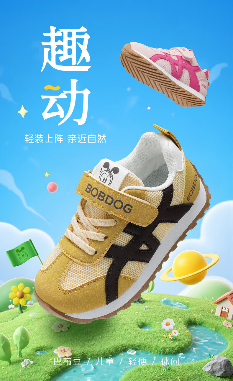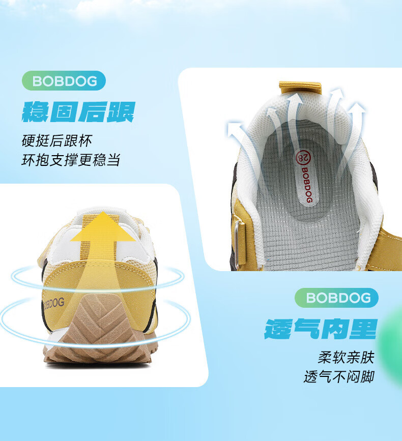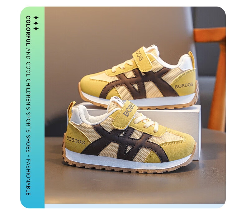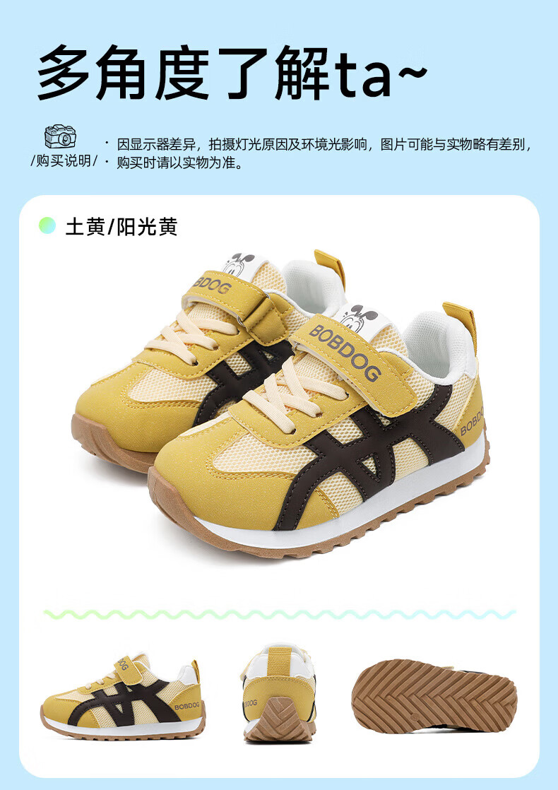 BOBDOG Children's Shoes Children's Sports Shoes 2026 New Spring Boys' Running Shoes Girls' Big Children's Casual Shoes Earthy Yellow/Sunshine Yellow 26 Suitable for Feet Length 15.8CM