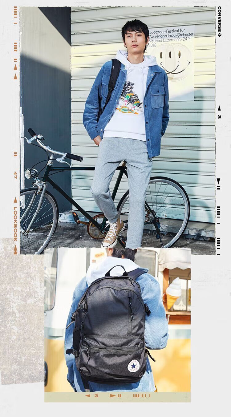 Converse trendy brand backpack men's large capacity junior high school and high school student schoolbag women's simple outdoor sports computer backpack KW- KW-milk white
