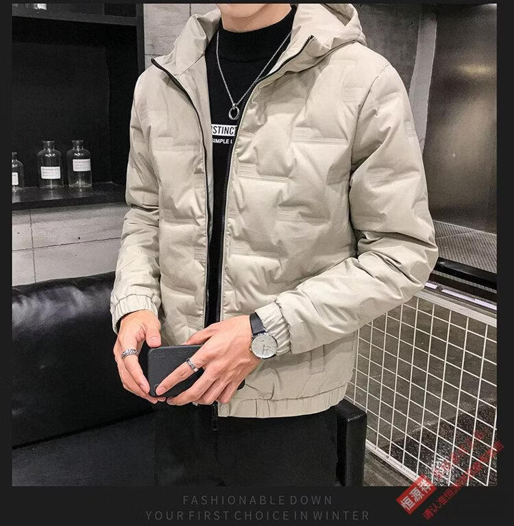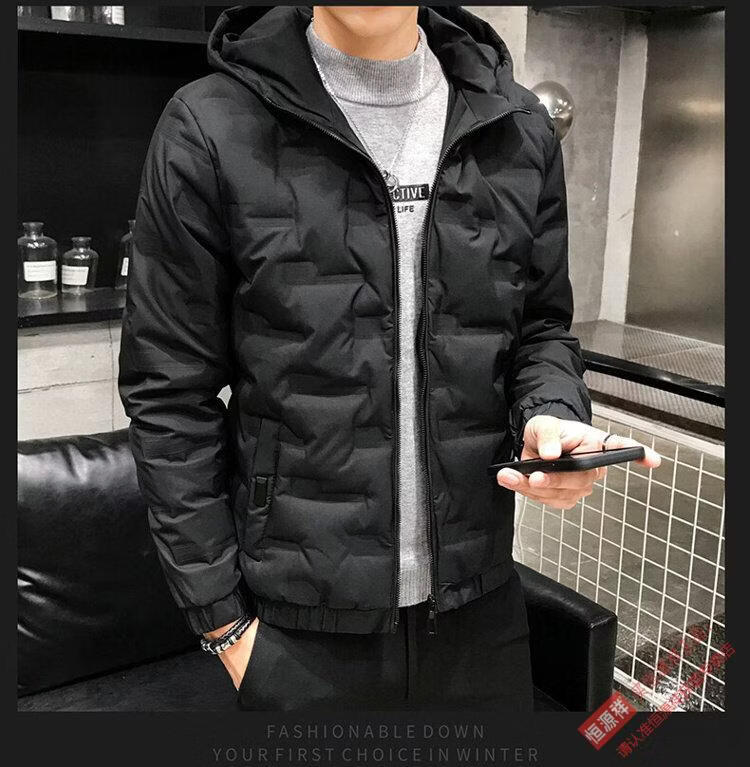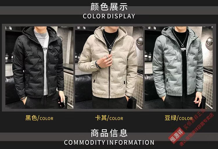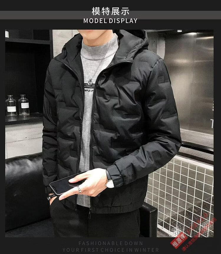 Hengyuanxiang down jacket men's winter new thin short style warm thickened white duck down hooded jacket winter men's jacket washed cotton 1Y1988 black M