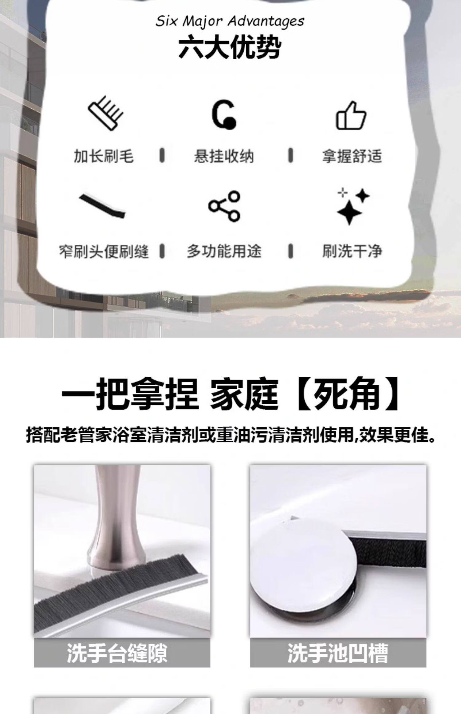 Multi-functional crevice brush extra-fine bathroom kitchen sink dead corner cleaning crevice brush window slot cleaning artifact long slit brush 1 pack