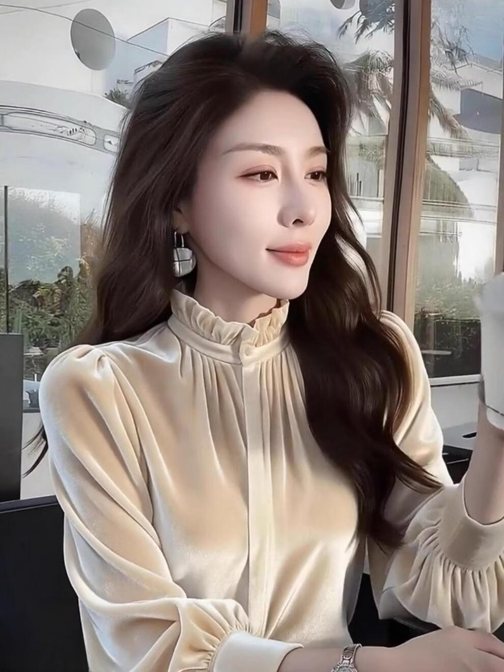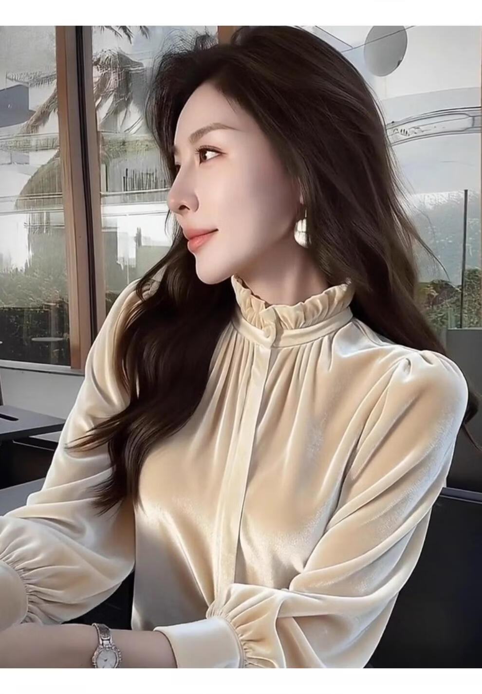 Off-white velvet top 2026 early spring high-end light luxury temperament unique and beautiful French petty bourgeoisie shirt off-white XL recommended 120-130Jin Jin equals 0.5 kg
