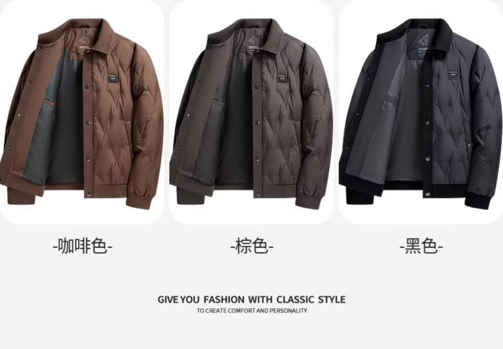 Hengyuanxiang light luxury middle-aged men's down jacket winter lapel jacket jacket casual business light daddy top R254260605 Brown XL 180 Recommended 130-150 Jin Jin equals 0.5 kg