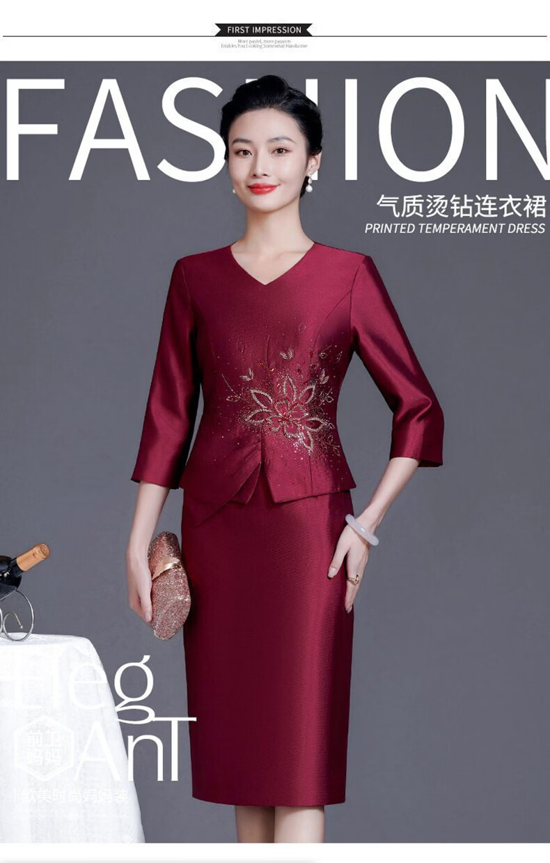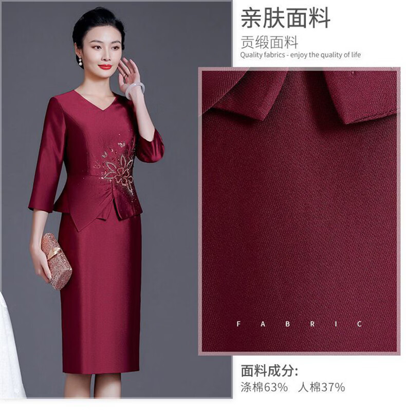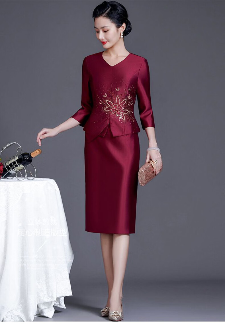 Wang Xiaoya 2026 Spring New Noble and Western Mother's Wedding Dress High-end Dress Young Wedding Banquet Outfit Burgundy M
