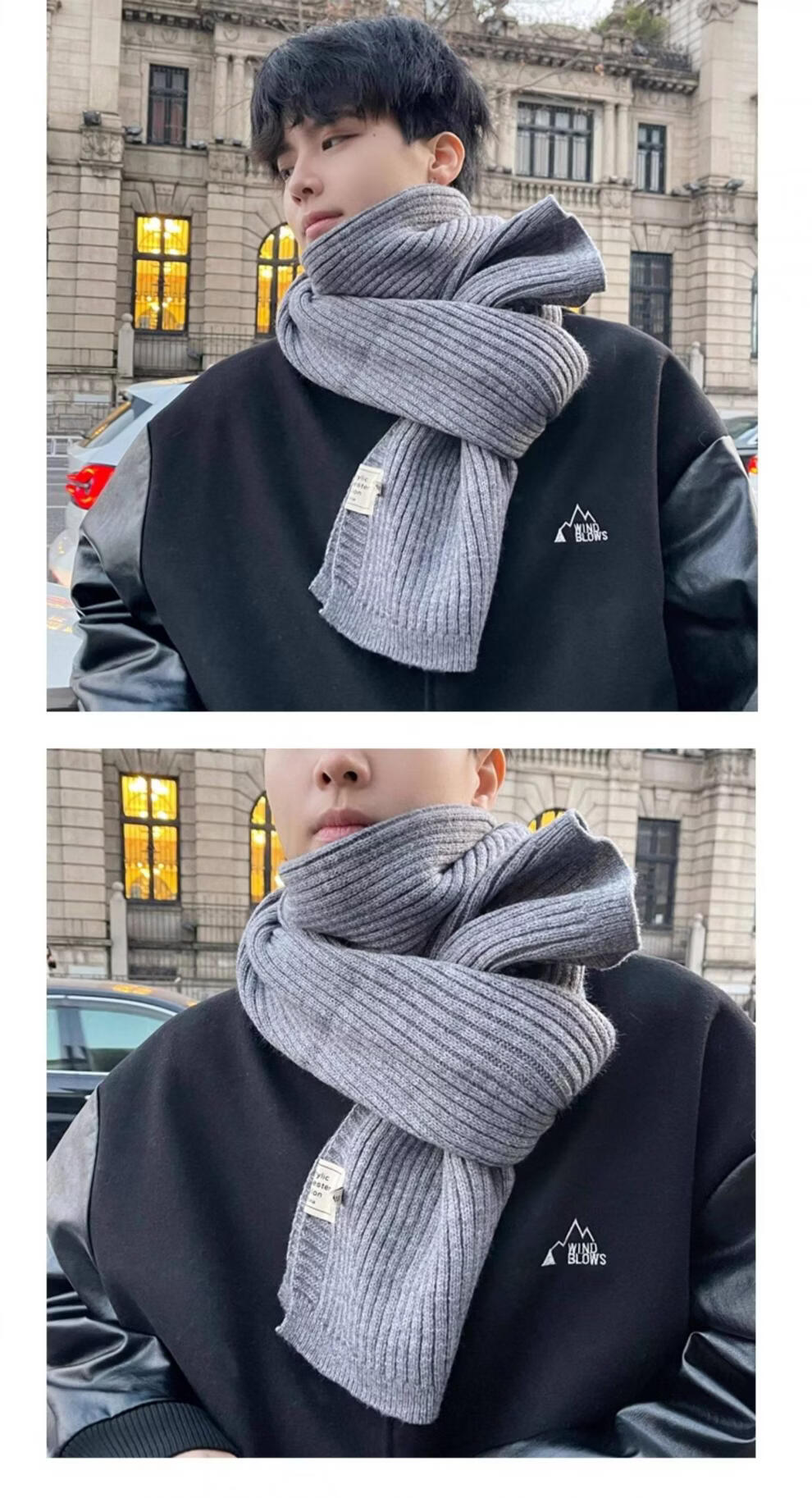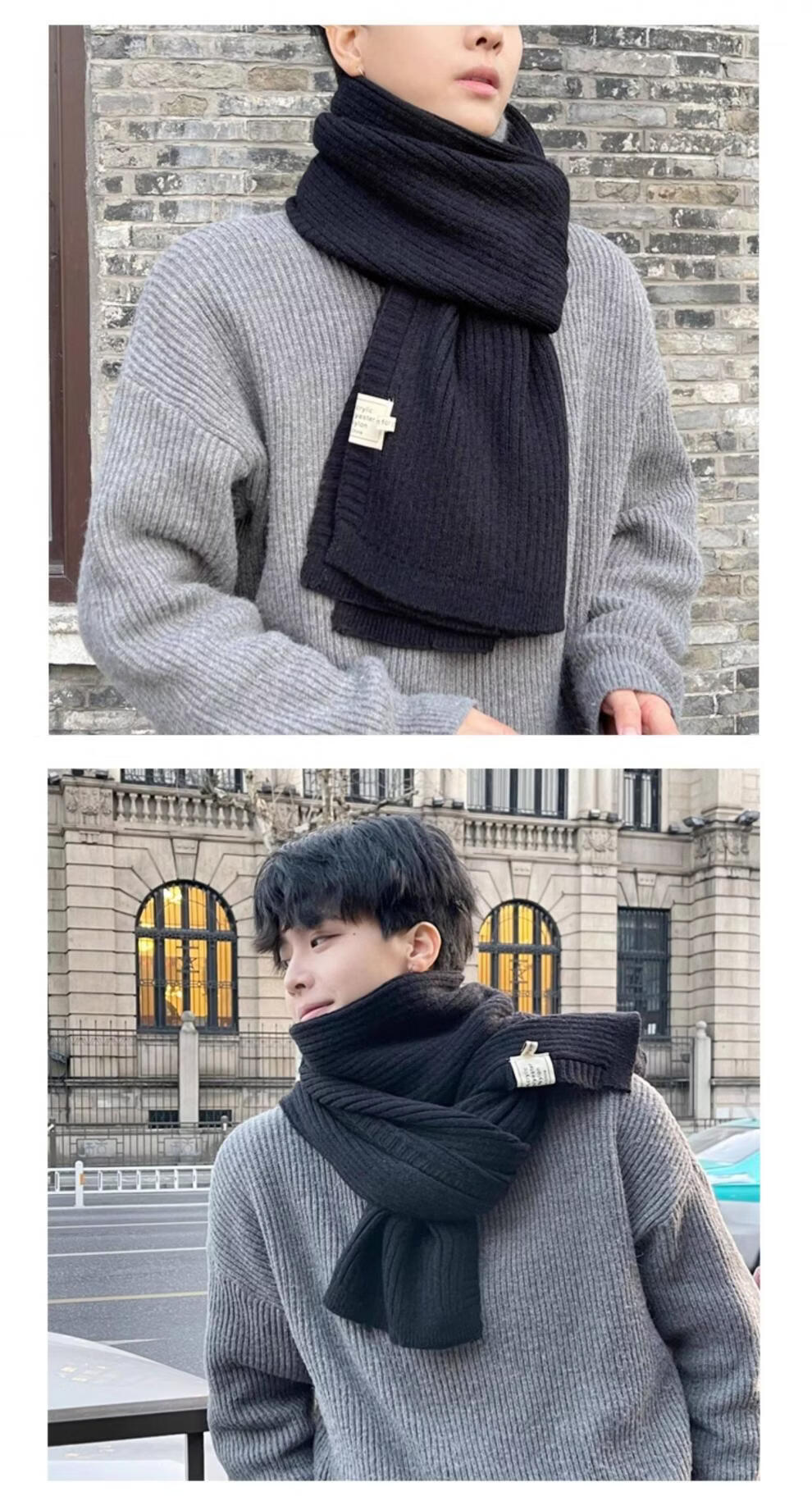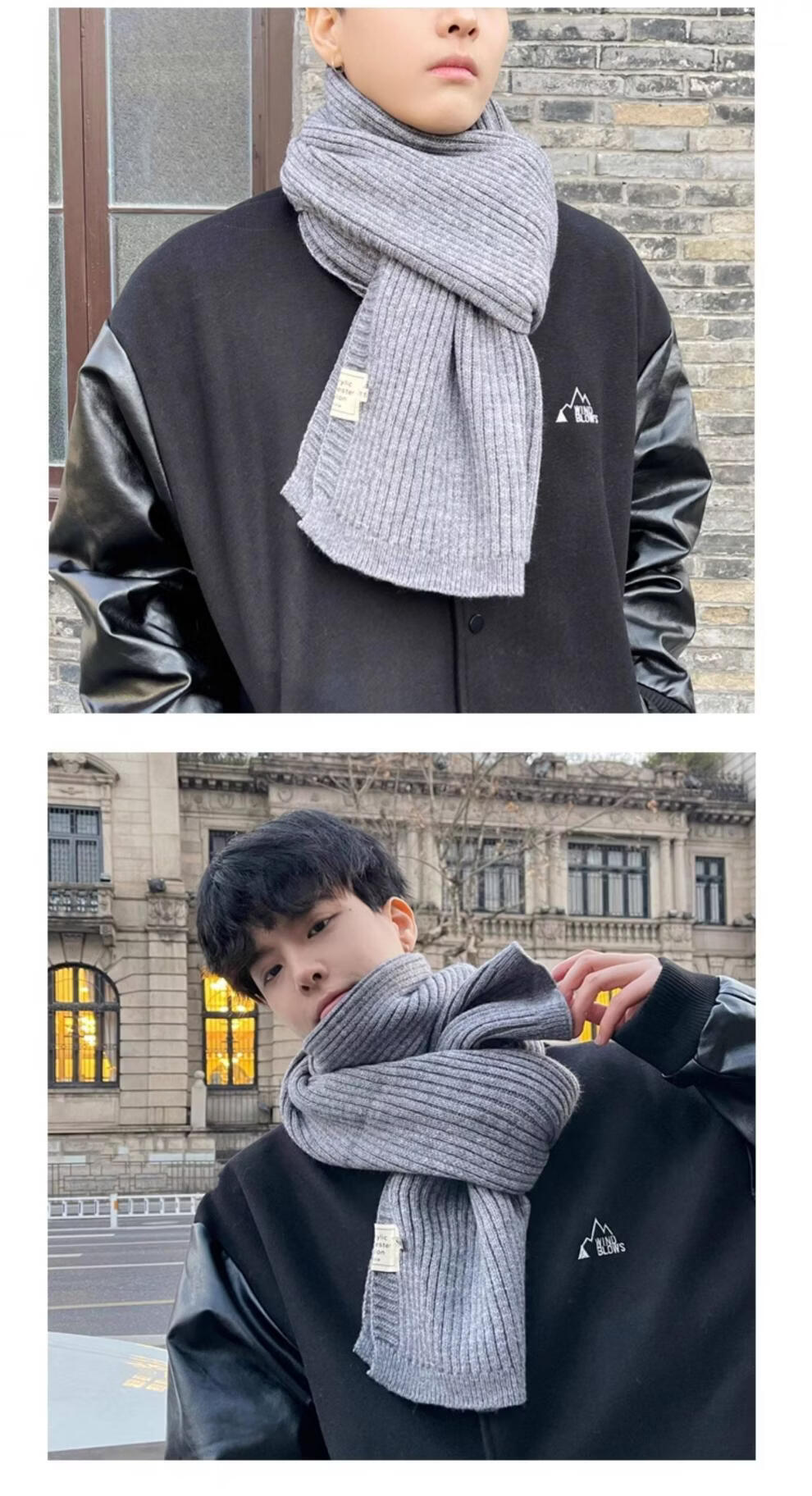 DL Fat Donglai same style scarf men's black men's winter new Korean version trendy thickened warm wool knitted gray-small vertical stripe W71 scarf