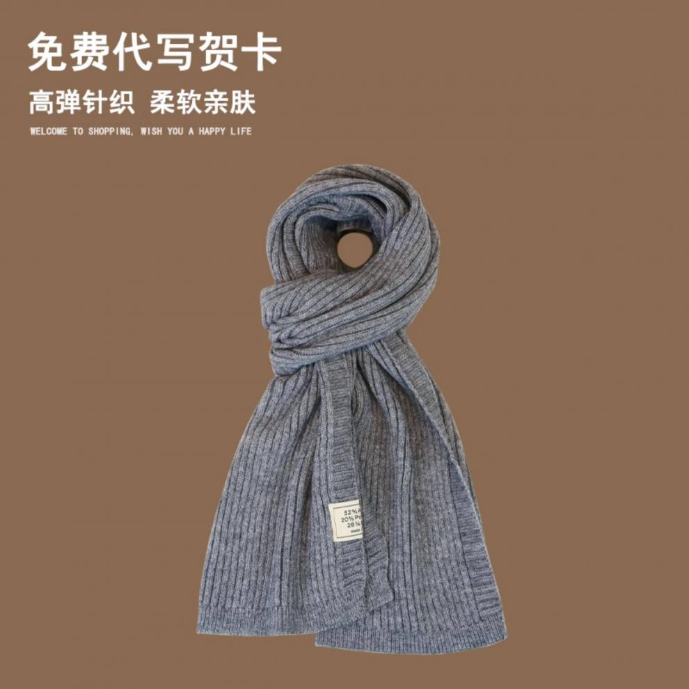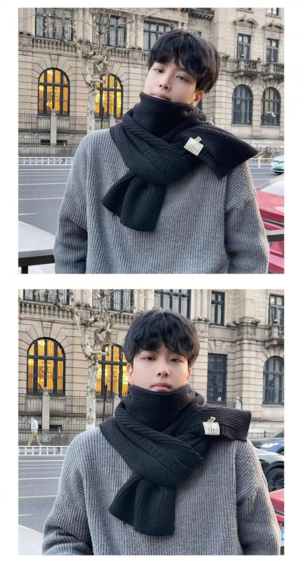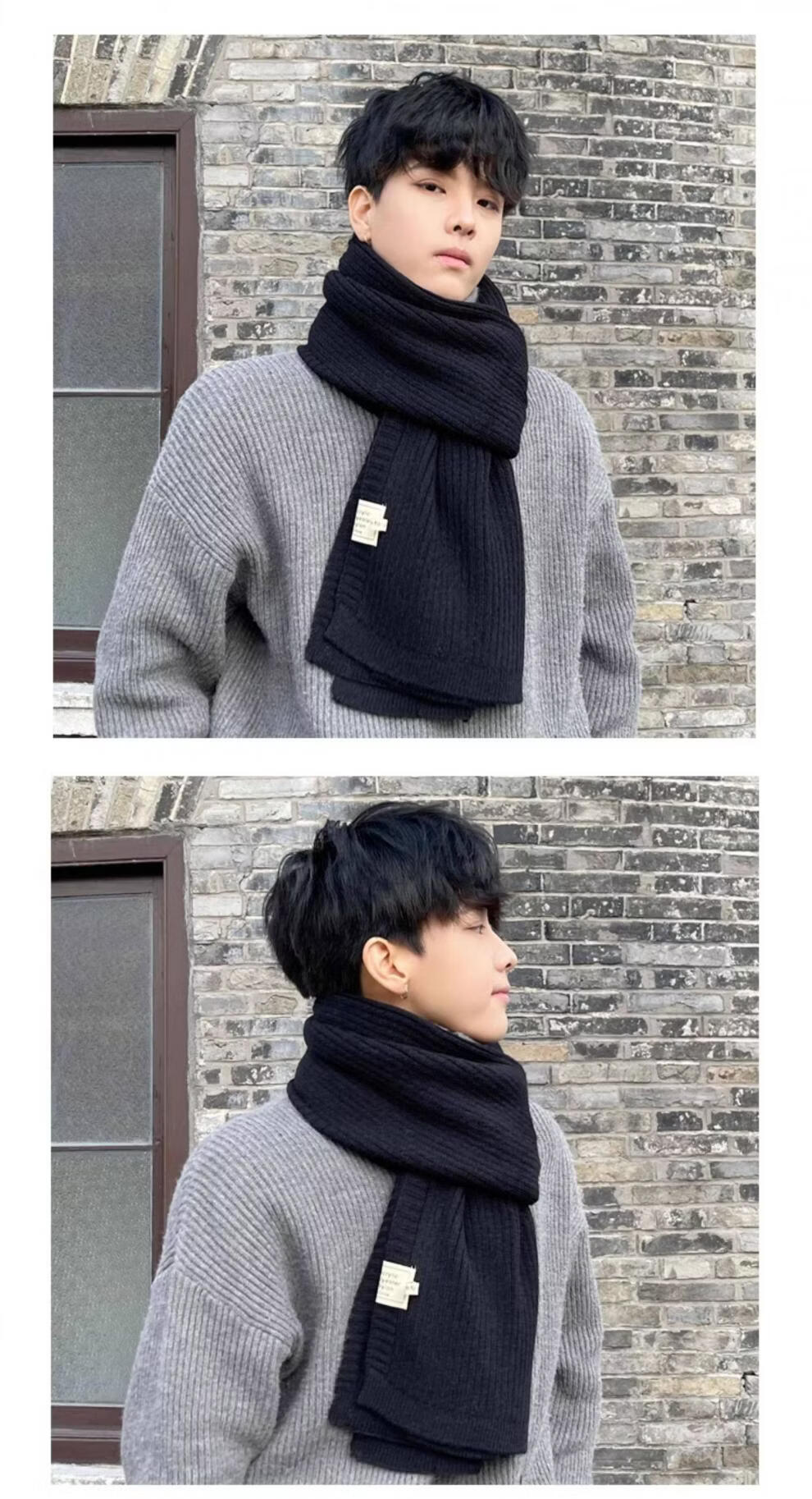 DL Fat Donglai same style scarf men's black men's winter new Korean version trendy thickened warm wool knitted gray-small vertical stripe W71 scarf