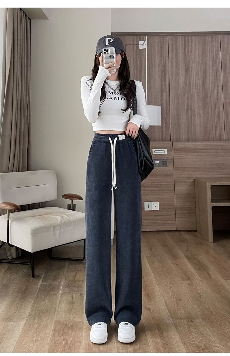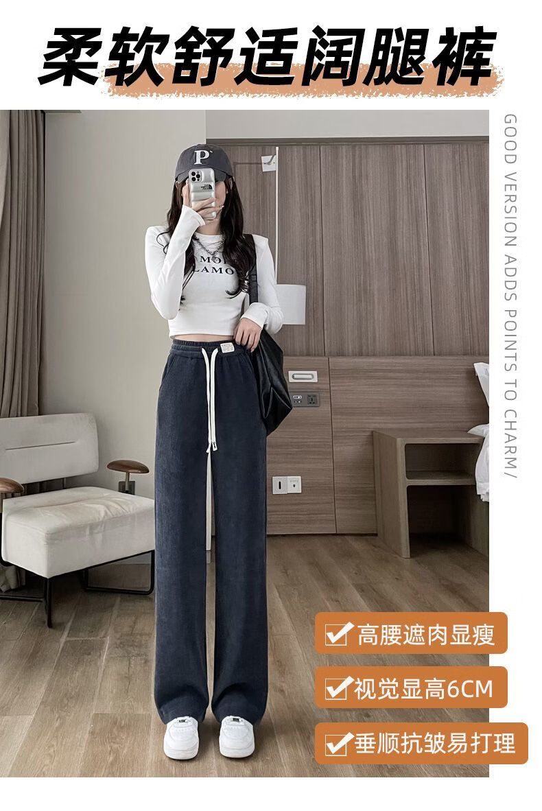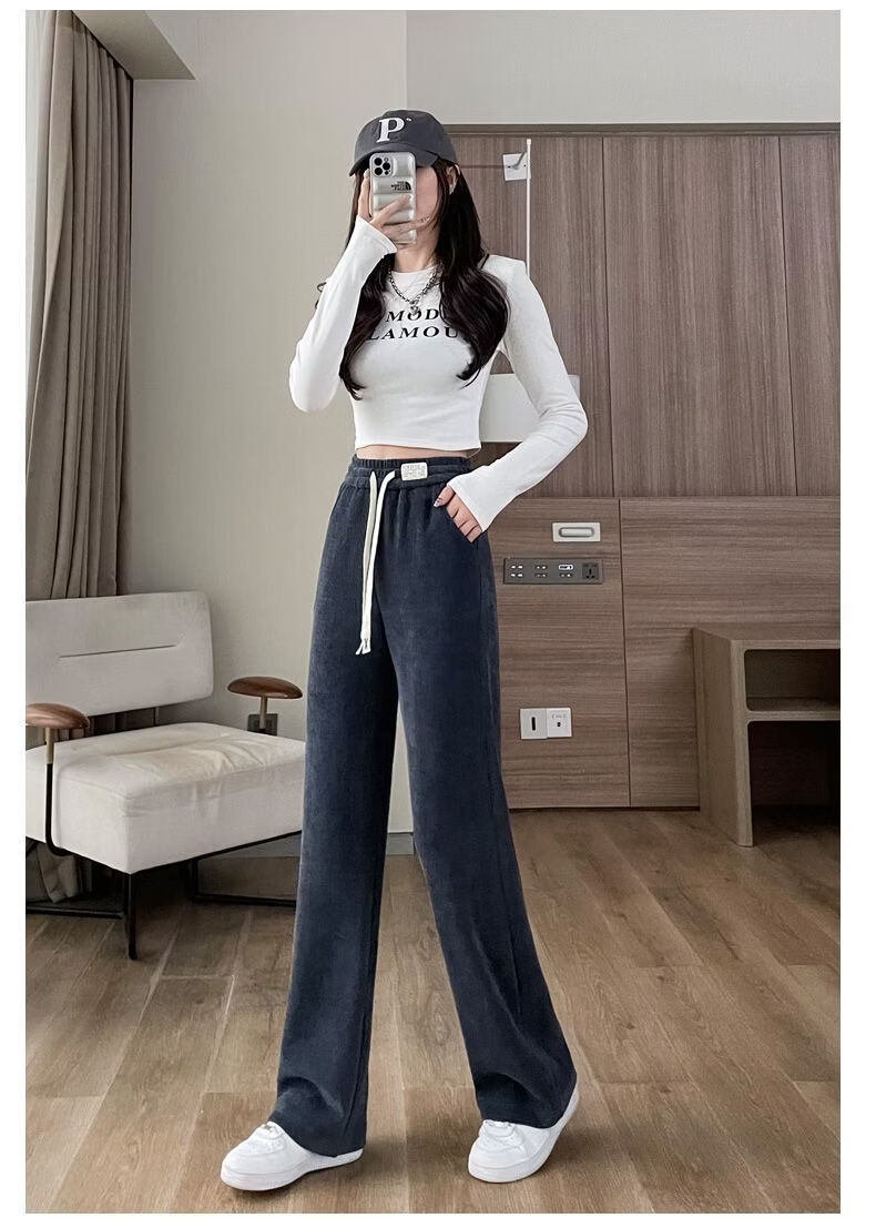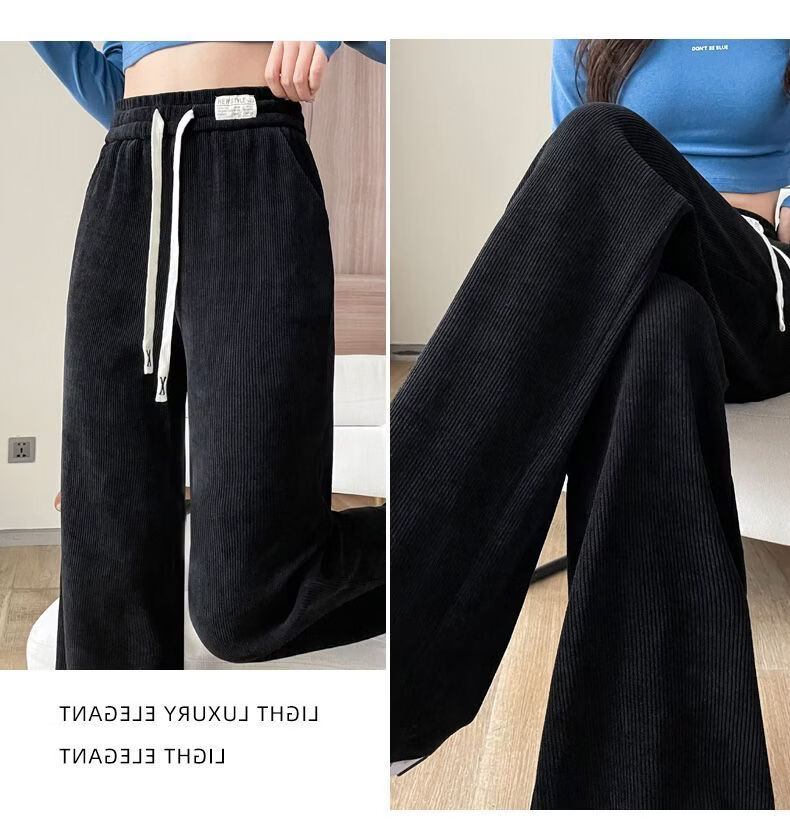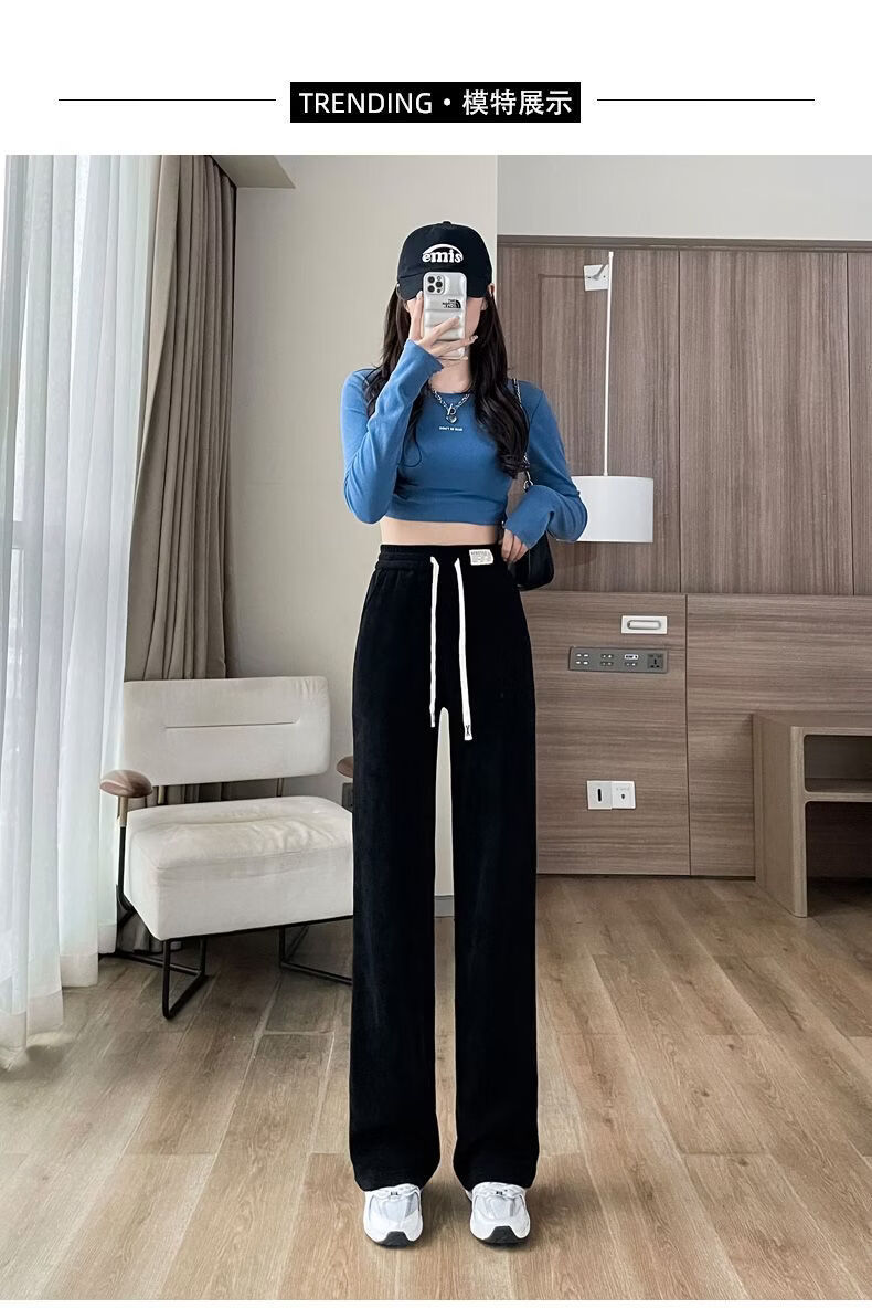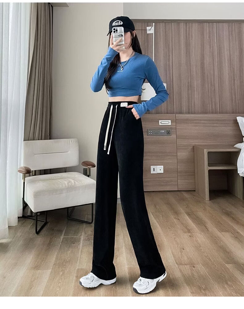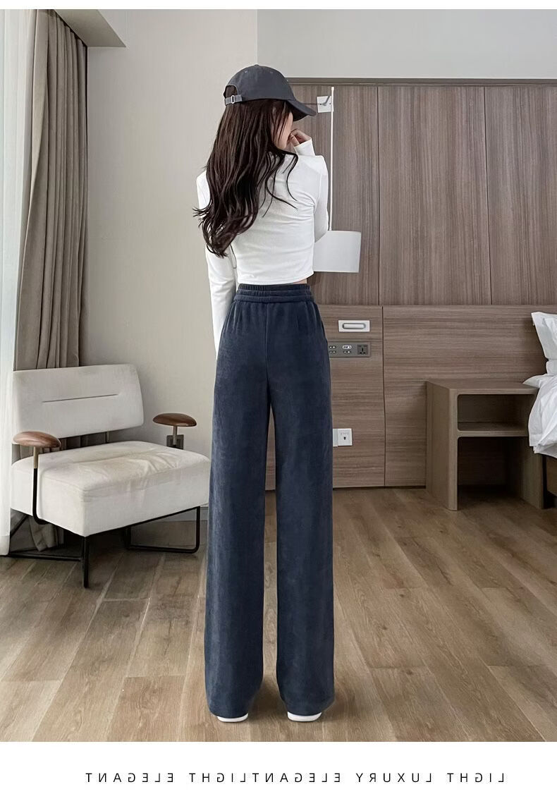 ROMON Velvet Wide Leg Pants Women's Velvet Pants Winter 2026 New Autumn and Winter Ins Thickened Narrow Straight Leg Women's Pants Black - Long Pants (Fellow Style) 2XL Recommended 126-140Jin Jin is equal to 0.5 kg