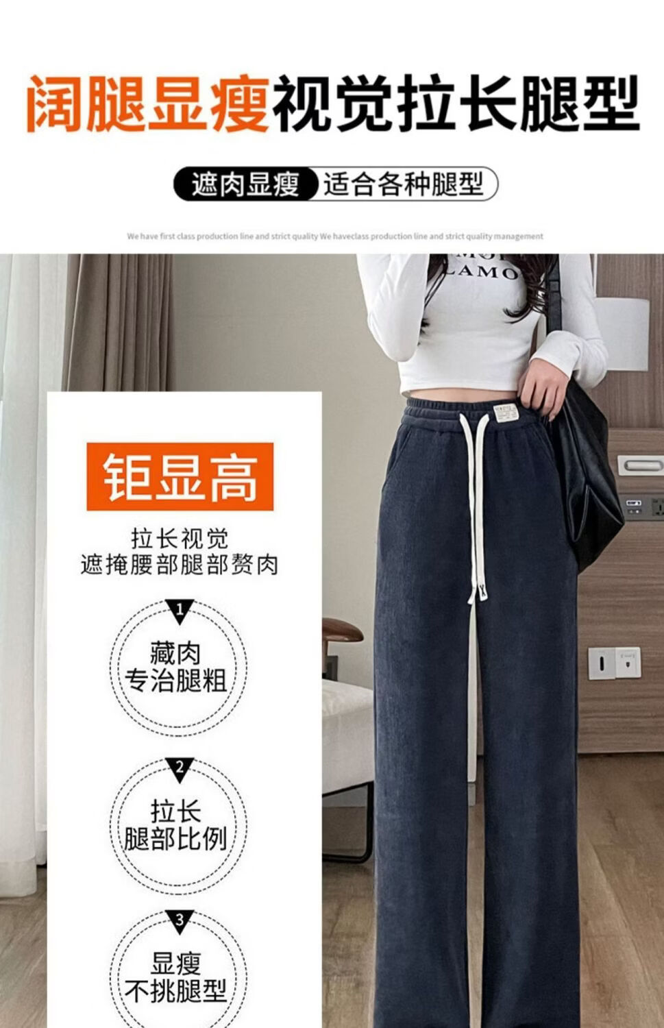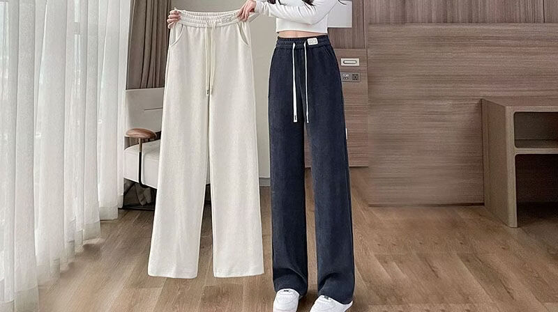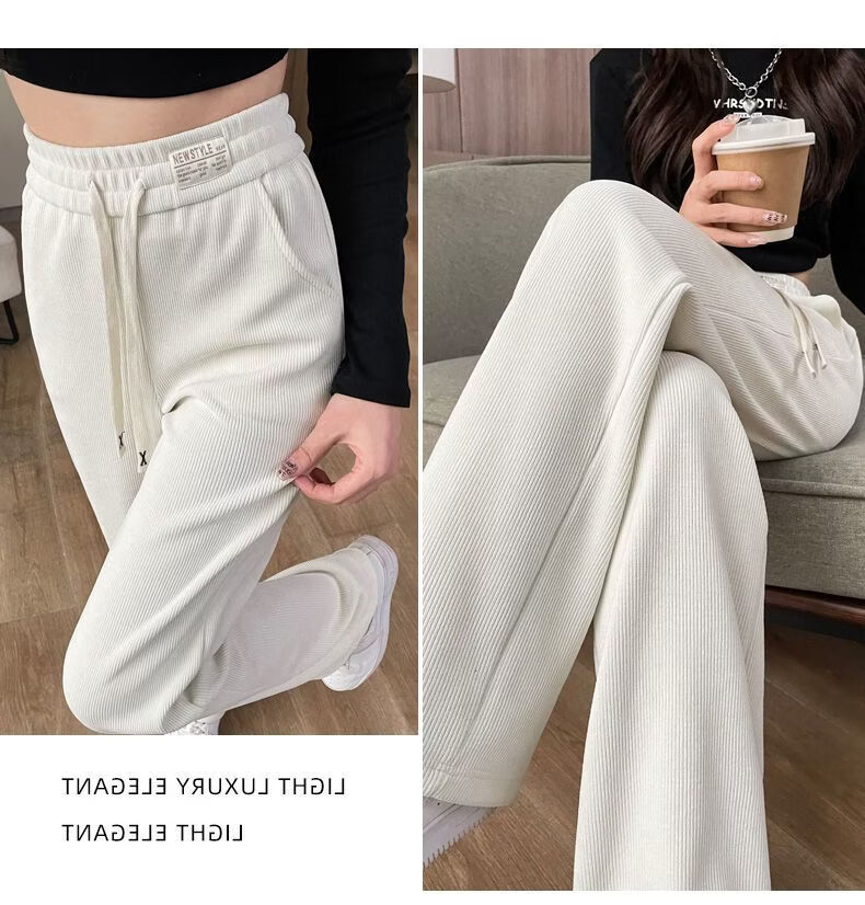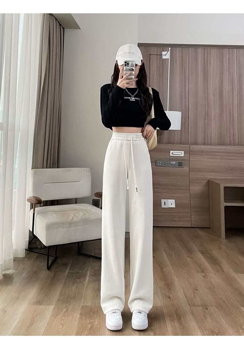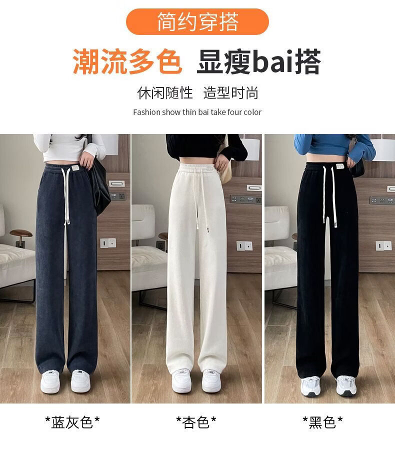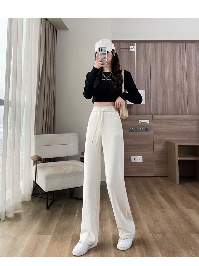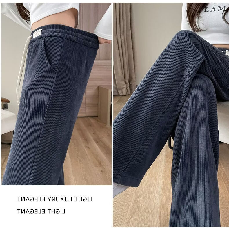ROMON Velvet Wide Leg Pants Women's Velvet Pants Winter 2026 New Autumn and Winter Ins Thickened Narrow Straight Leg Women's Pants Black - Long Pants (Fellow Style) 2XL Recommended 126-140Jin Jin is equal to 0.5 kg