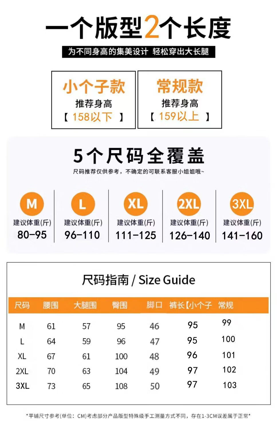 Outseam (cm) 99 cm 101.5 cm 104 cm 106.5 cm 109 cm