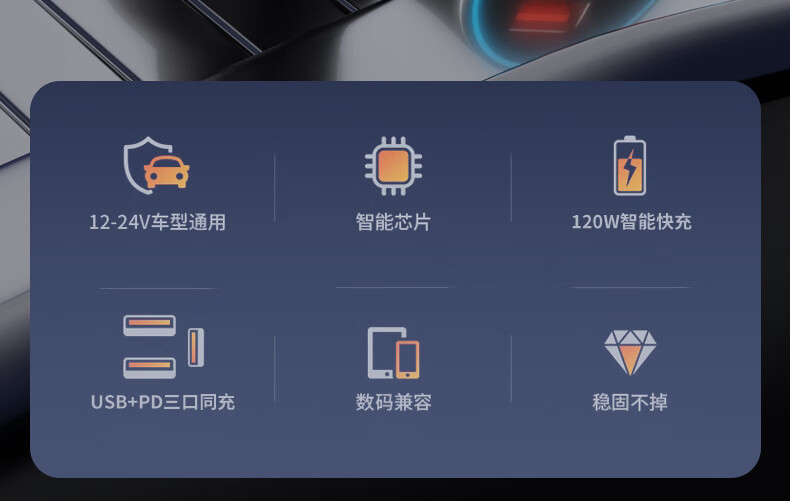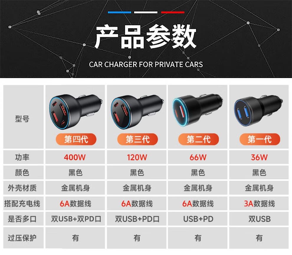 Suitable for Changan Dark Blue SL03 Car Charger S7 Cigarette Lighter Adapter Plug Fast Charging Car Supplies Dark Blue-Fashion Black Four Ports Fast Charging 400W