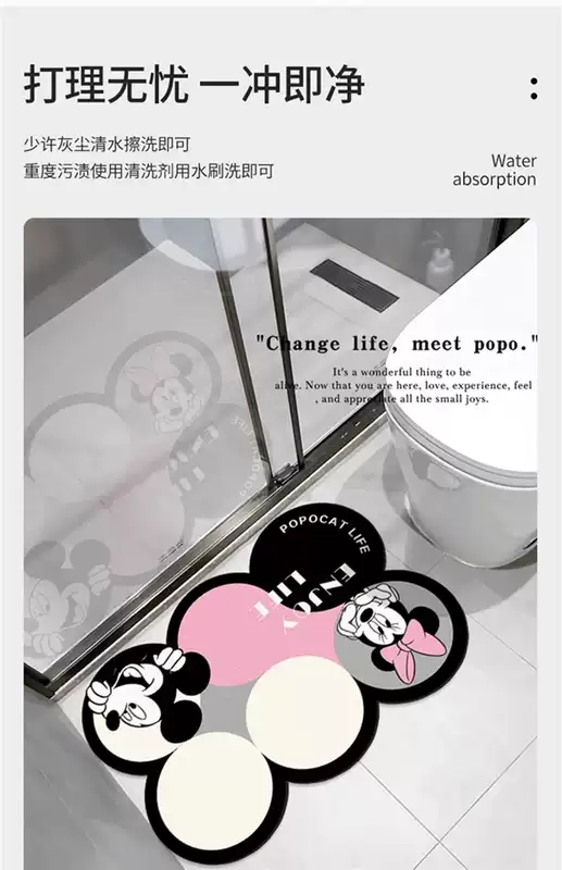 Yusenyi Cartoon Mickey Bathroom Toilet Floor Mat Bathroom Door Strong Water Absorption Quick-Drying Diatom Mud Non-Slip Soft Home DY Mickey Dream A Diatom Mud Floor Mat 40x60cm (environmentally friendly and odorless)