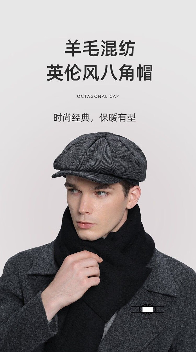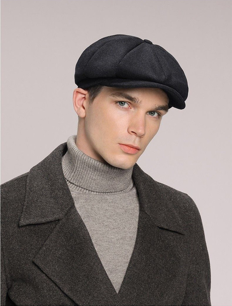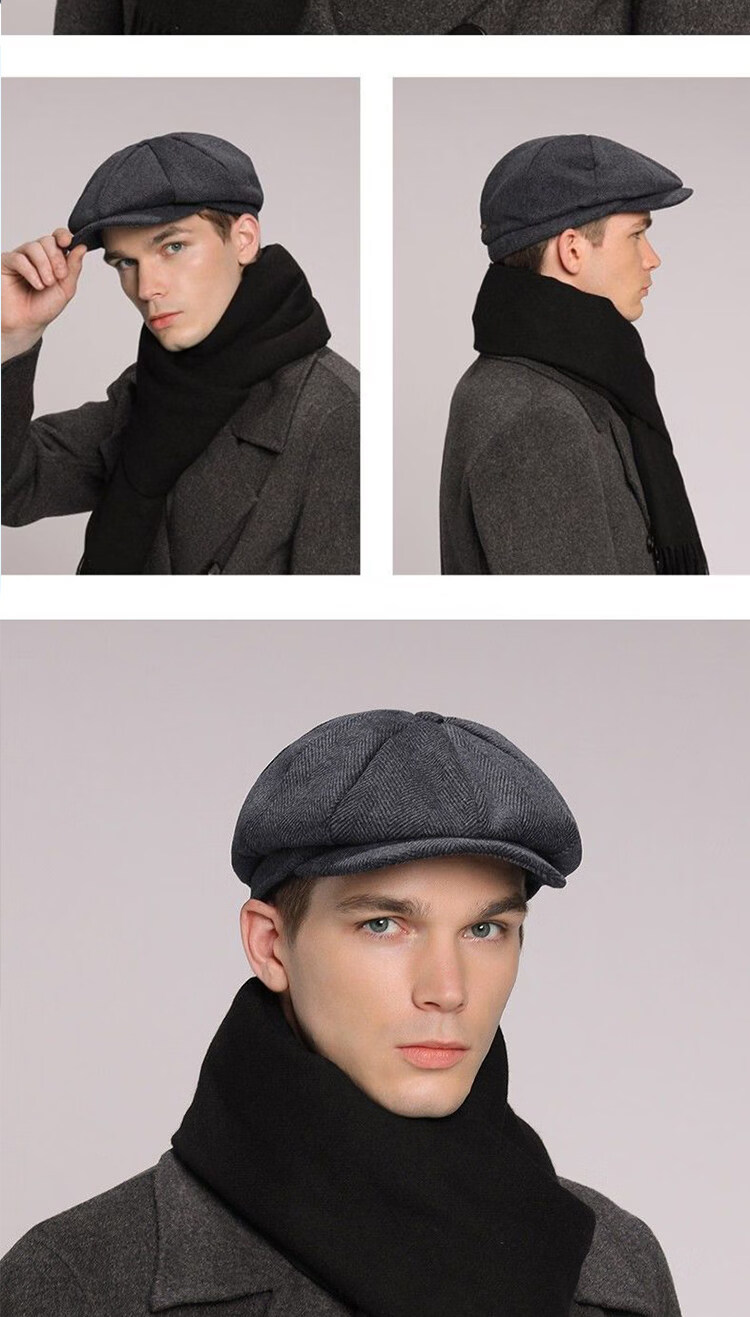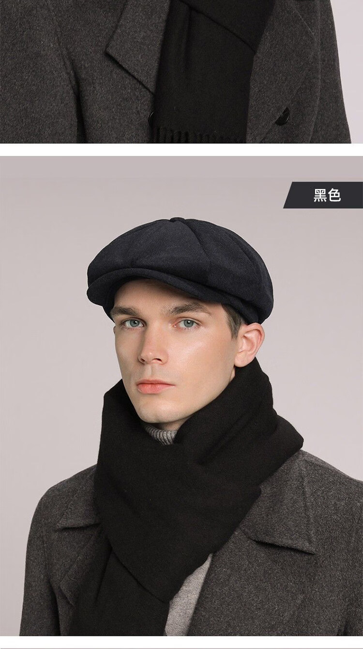 Kaooseen beret men's octagonal hat men's autumn and winter large head circumference retro British style new thick wool woolen hat painter black versatile style M 59cm suitable for 59-62b