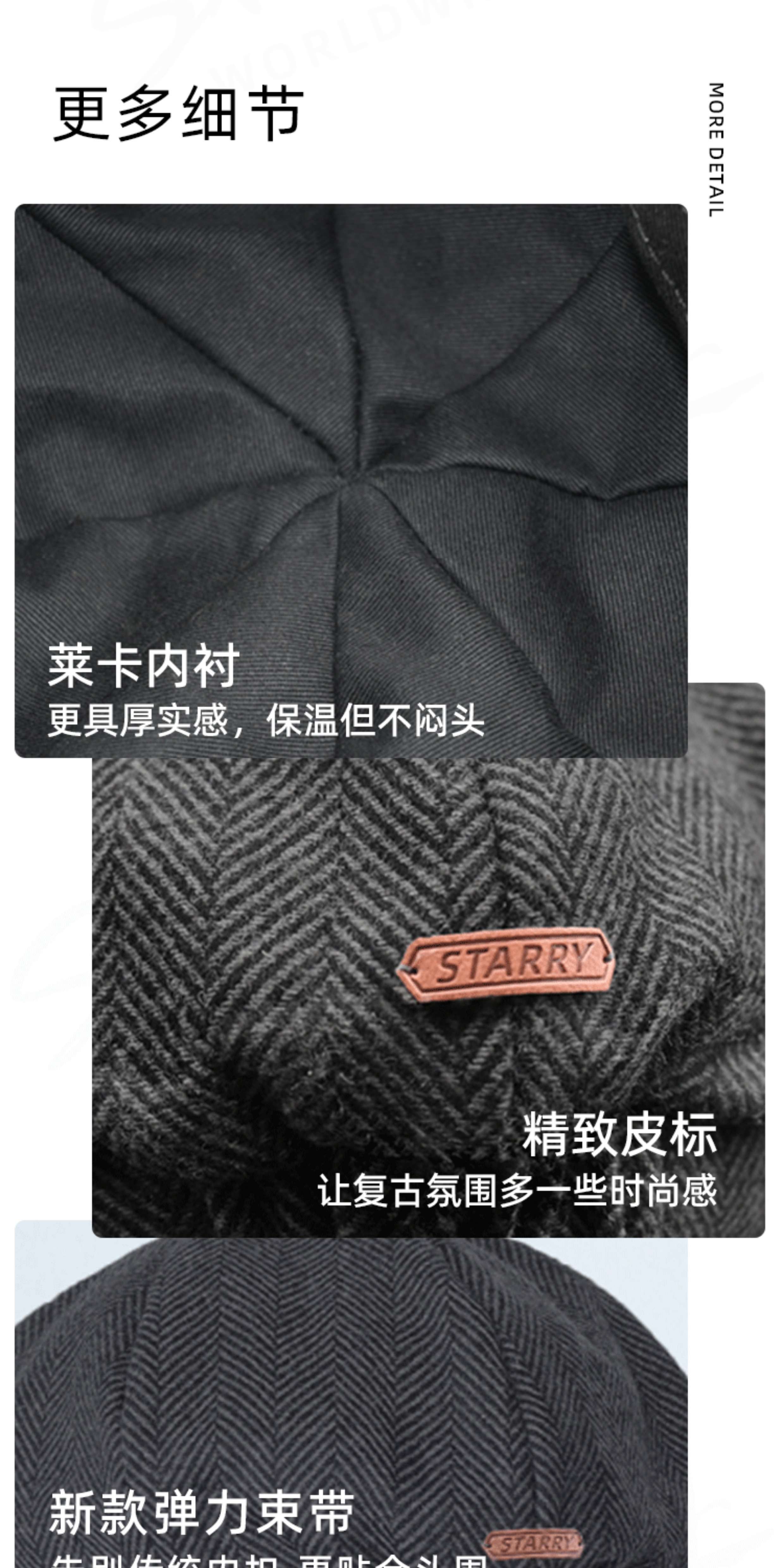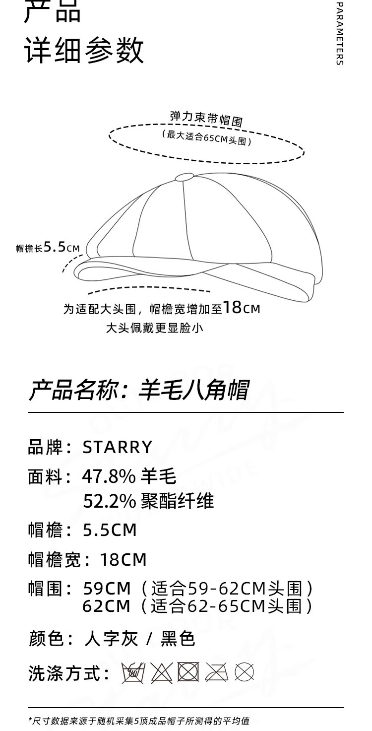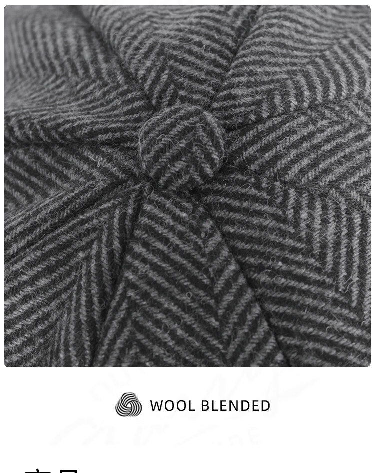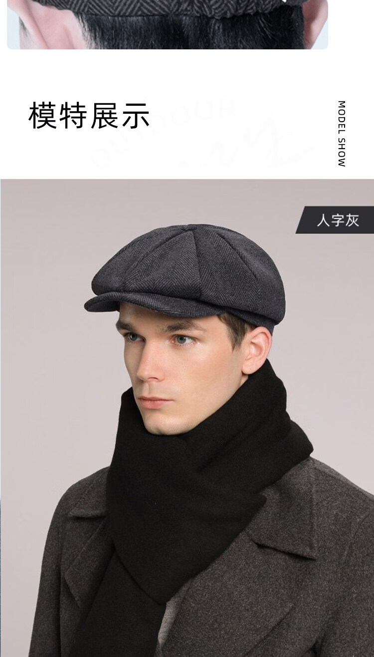 Kaooseen beret men's octagonal hat men's autumn and winter large head circumference retro British style new thick wool woolen hat painter black versatile style M 59cm suitable for 59-62b