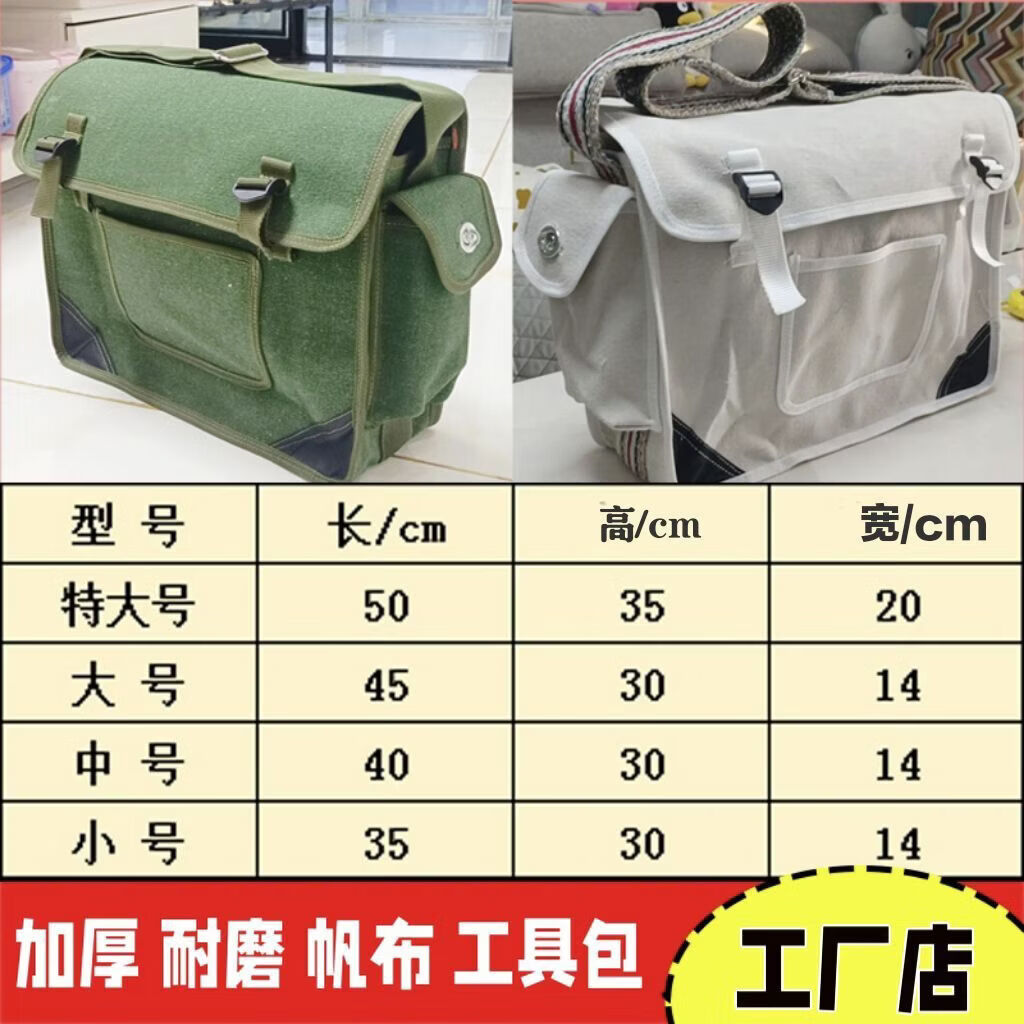 Ye Yu construction site tool bag thickened canvas wear-resistant large repair hardware tool satchel water and electricity canvas bag thickened and strong white extra thick extra large with compartment 50*20*35
