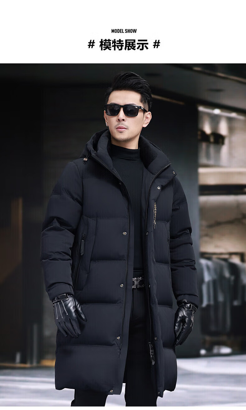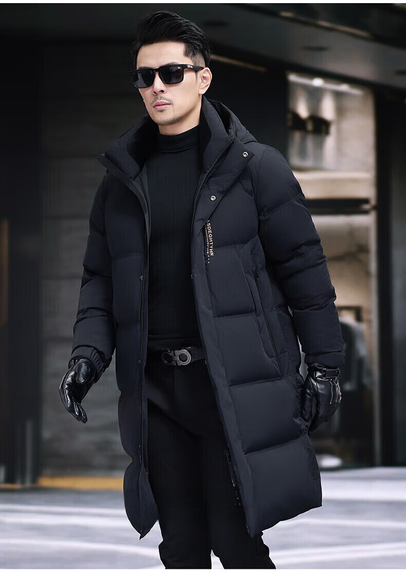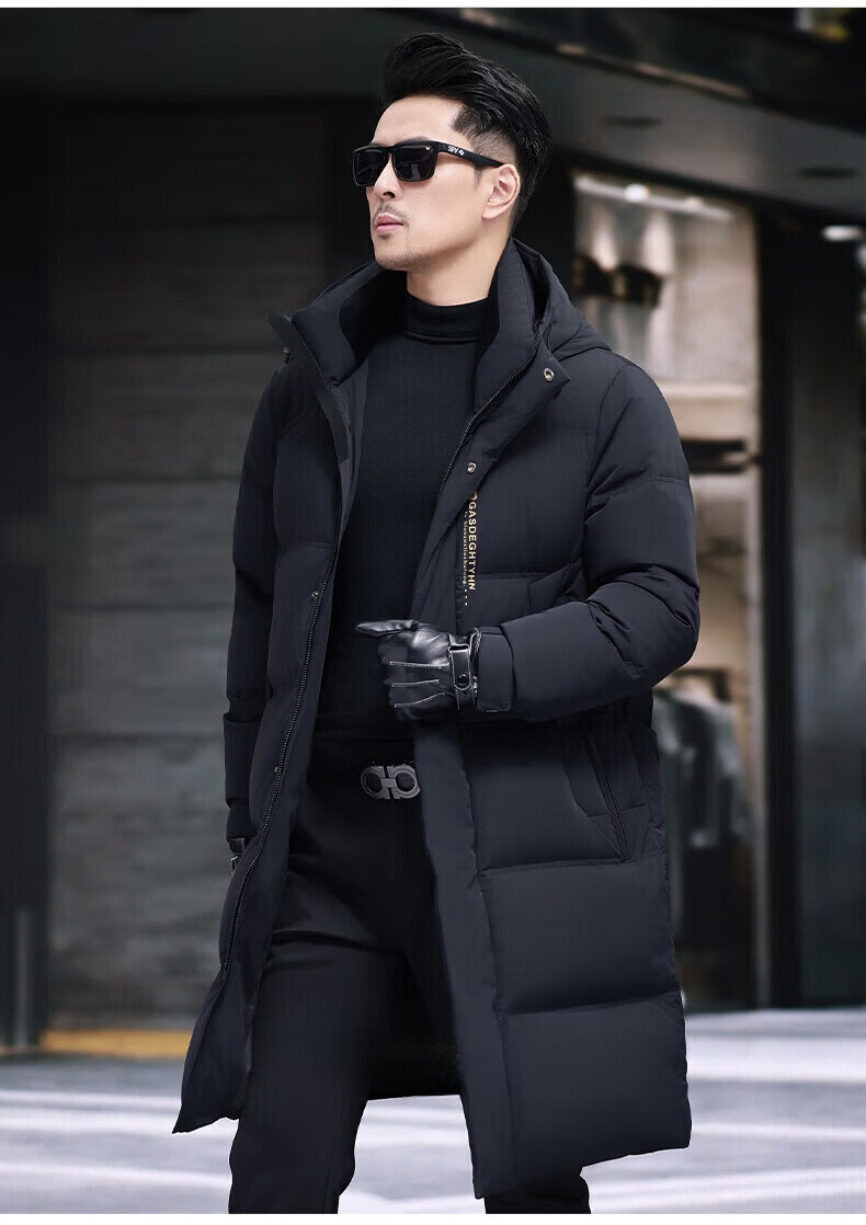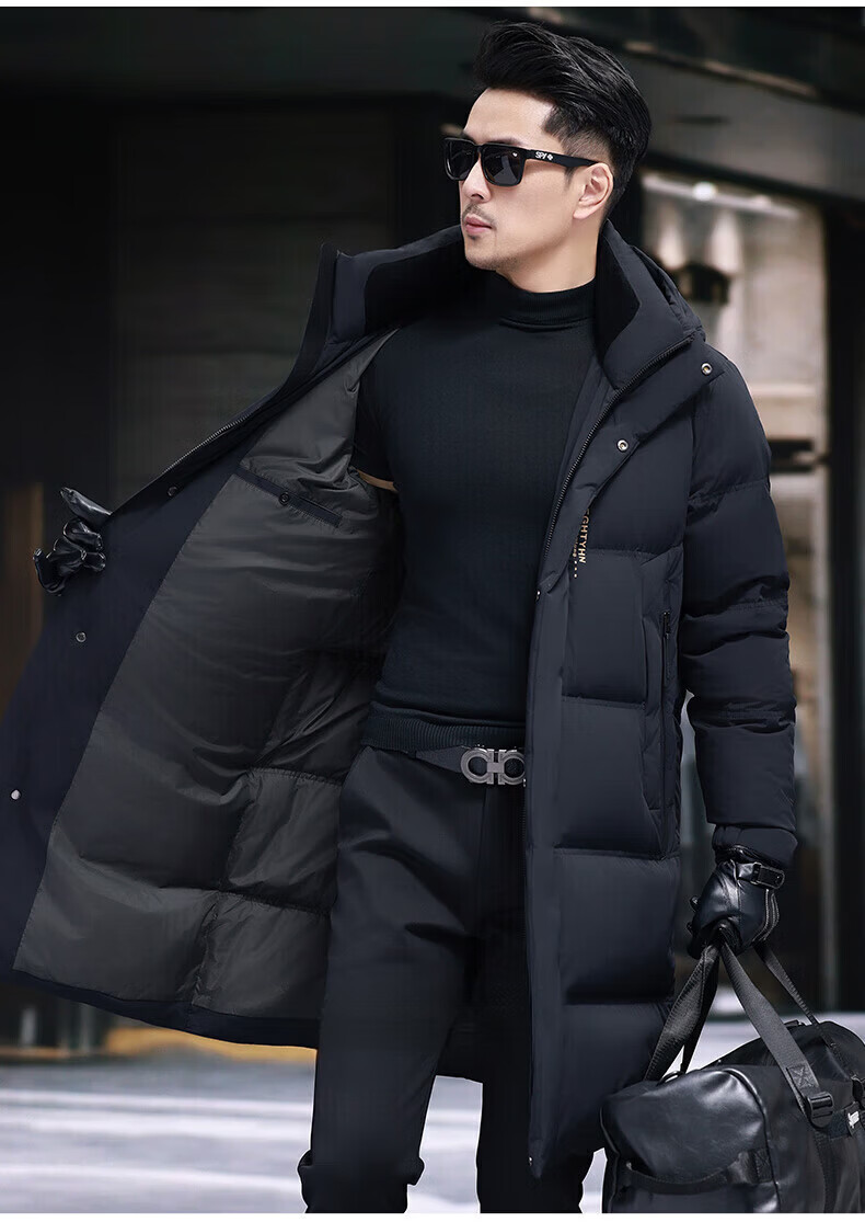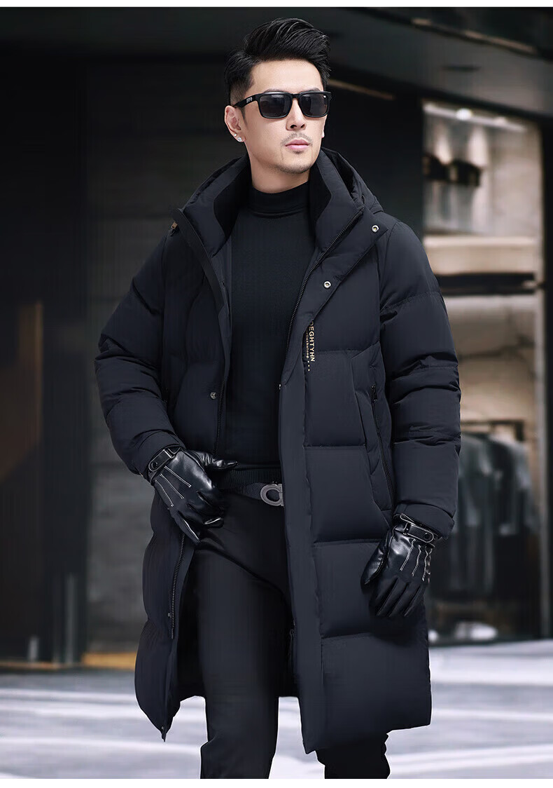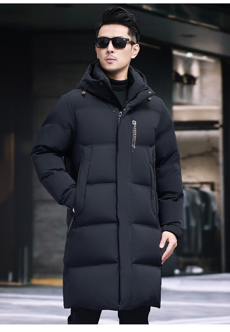 GUSKI Luxury High-end Brand Down Jacket Men's Autumn and Winter New Thick Warm Mid-Length Over-the-Knee Winterproof Jacket Black - Exquisite Gift Box M 170