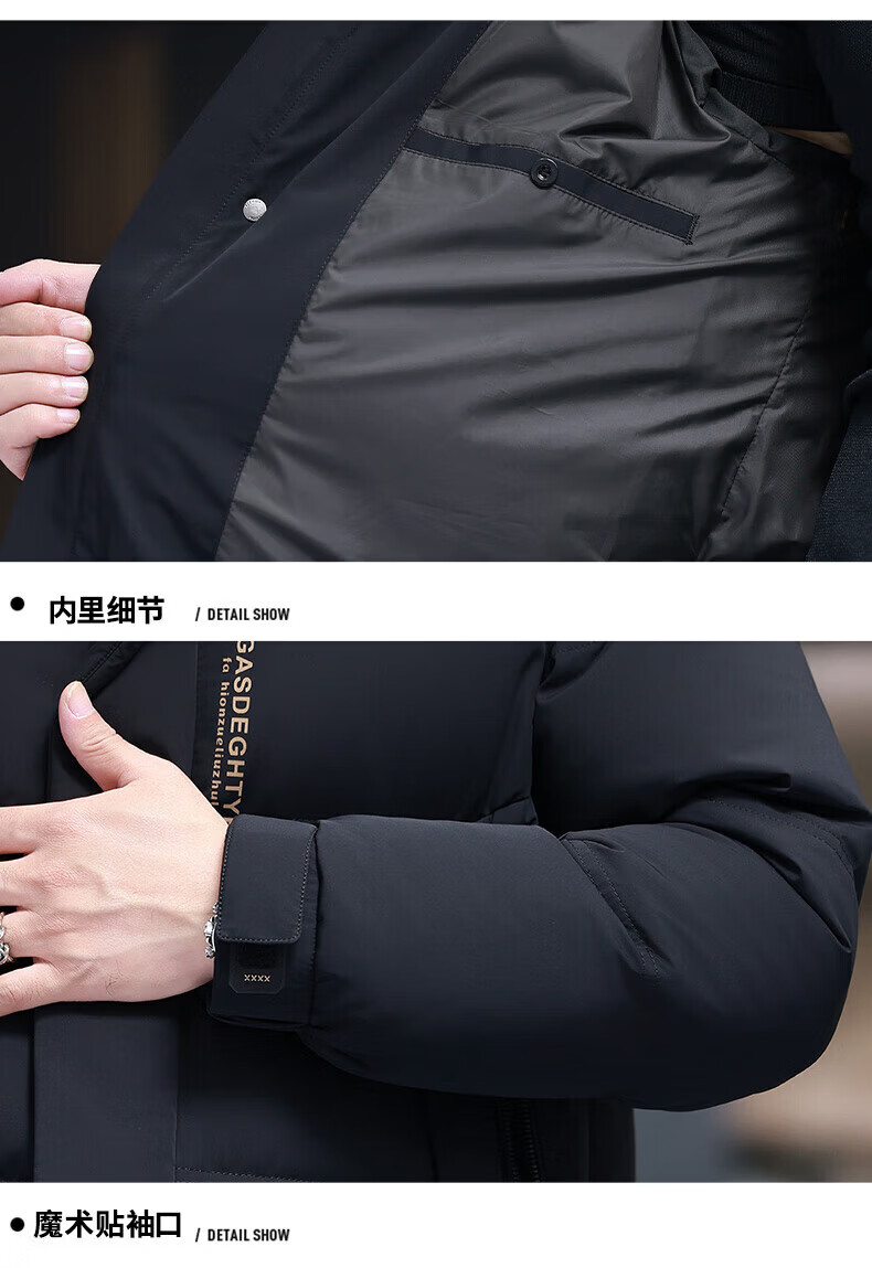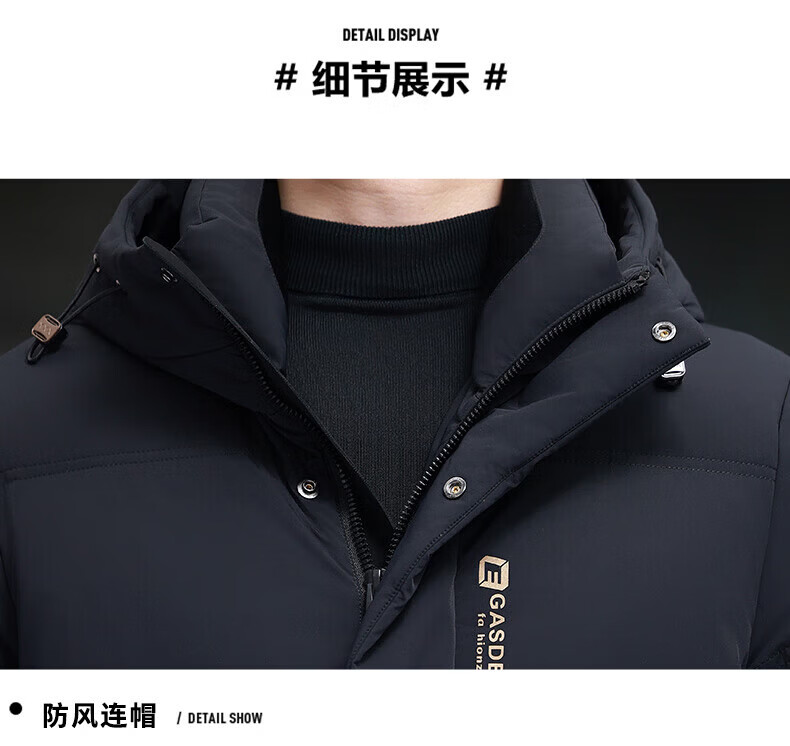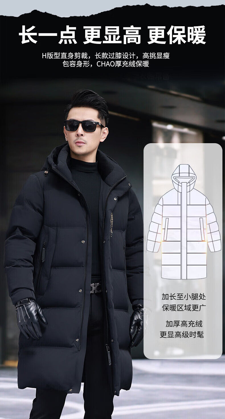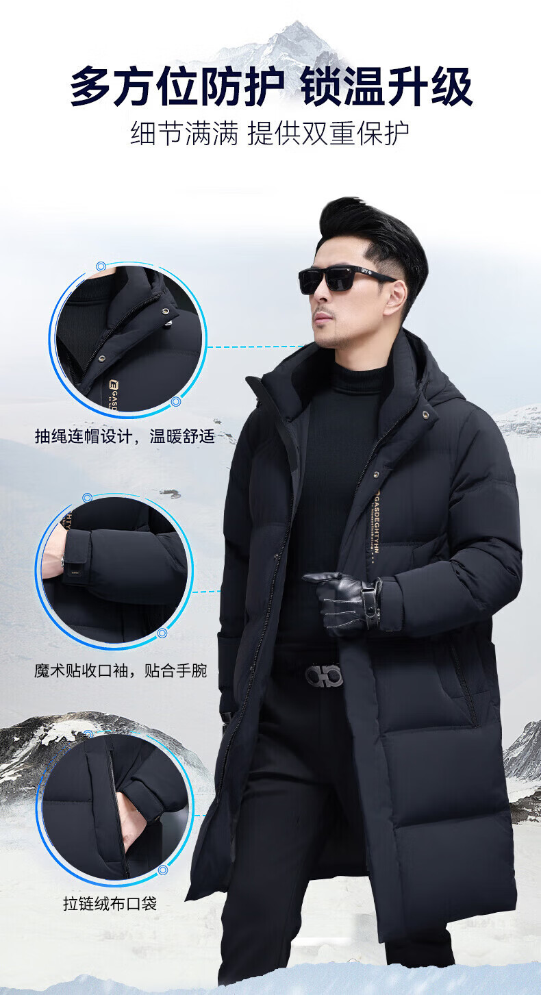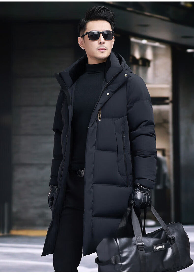 GUSKI Luxury High-end Brand Down Jacket Men's Autumn and Winter New Thick Warm Mid-Length Over-the-Knee Winterproof Jacket Black - Exquisite Gift Box M 170