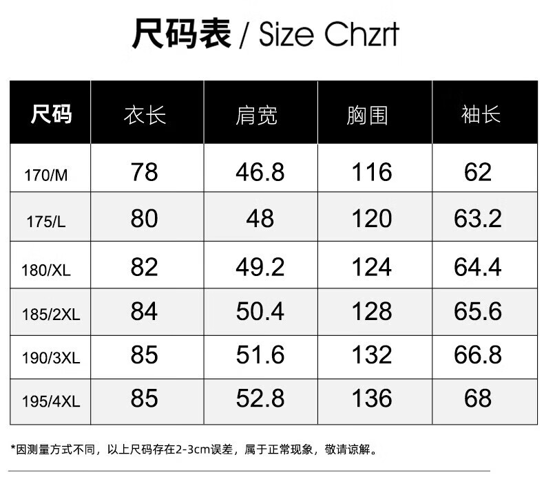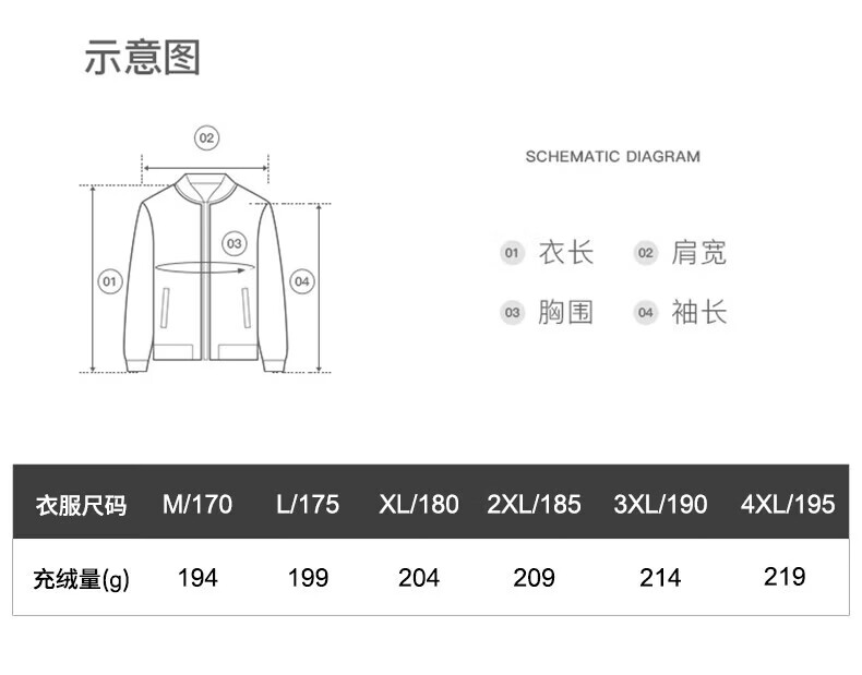China (cm) 165 / 88-90 170 / 96-98 175 / 108-110 180 / 118-122 185 / 126-130