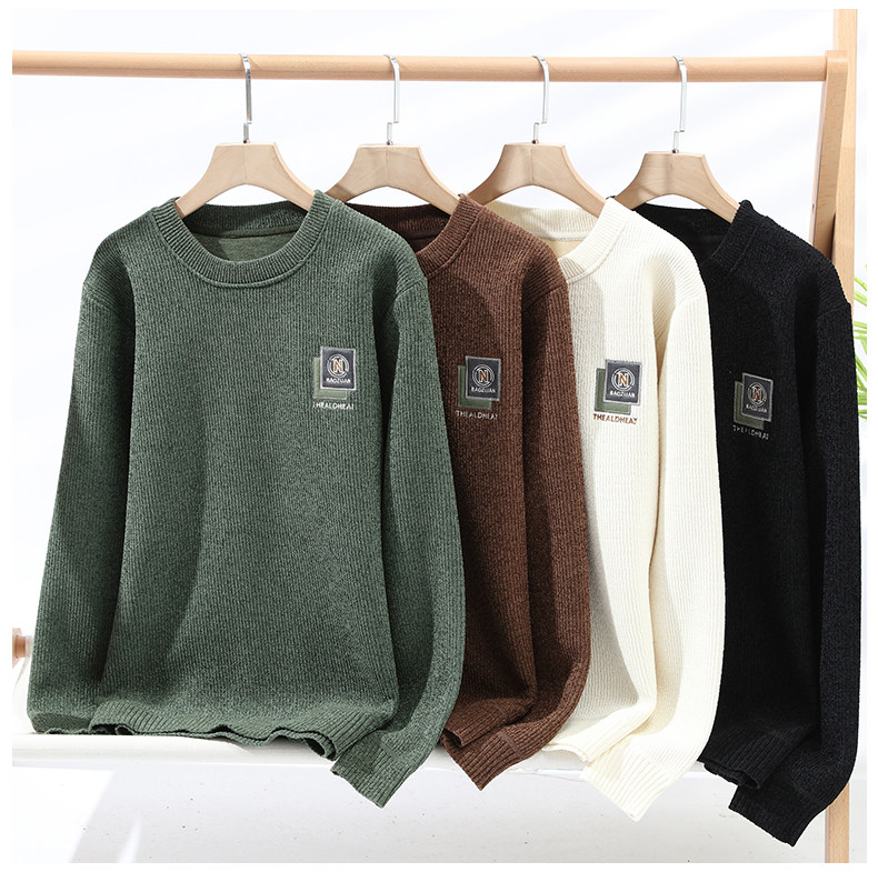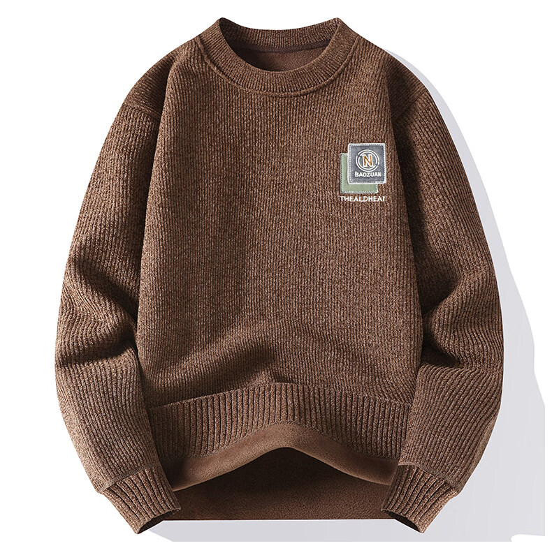 Woodpecker crew neck sweater men's winter thickened warm knitted sweatshirt men's autumn and winter casual loose plus velvet inner layering shirt 9427 coffee plus velvet M about 110-120 Jin Jin equals 0.5 kg can be worn