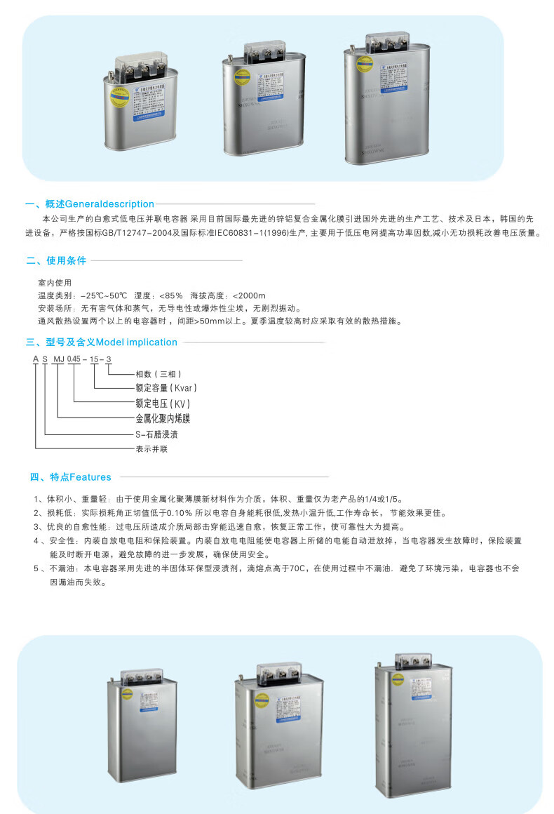 Shanghai Viscon anti-harmonic self-healing power parallel compensation filter capacitor ASMJ0.45-30-3 20 Shanghai Viscon anti-harmonic-15Kva (SH) 480v (please contact customer service for delivery date)