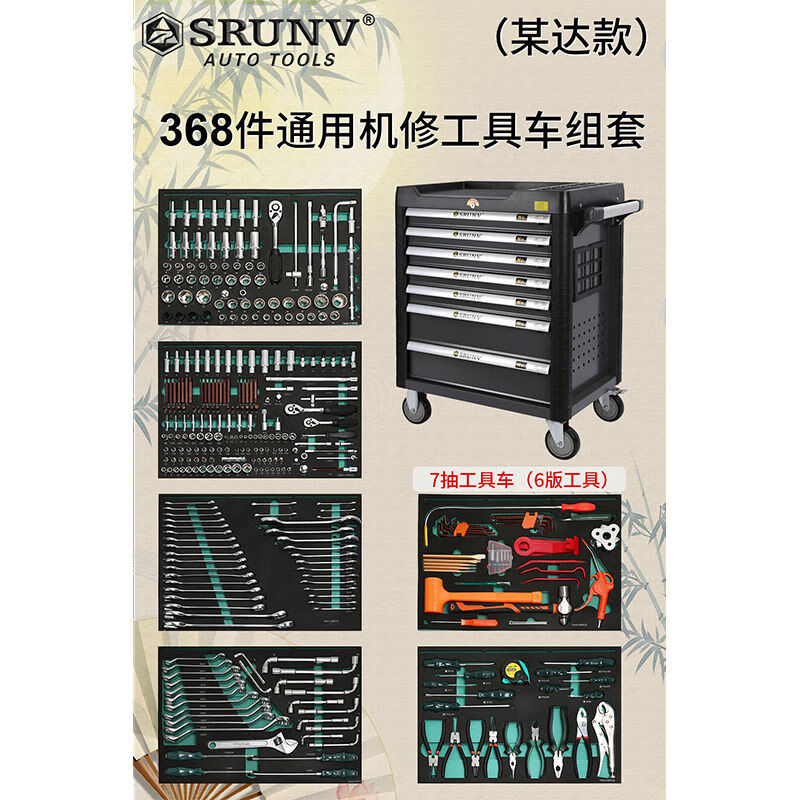 Kezitu Auto Repair Tool Combination Tool Cart 368 Pieces Certain Da Model Set 7-Layer Car Repair Tool Cabinet Maintenance Trolley Xinrui 352 Piece Set Tools + Four Colors Available