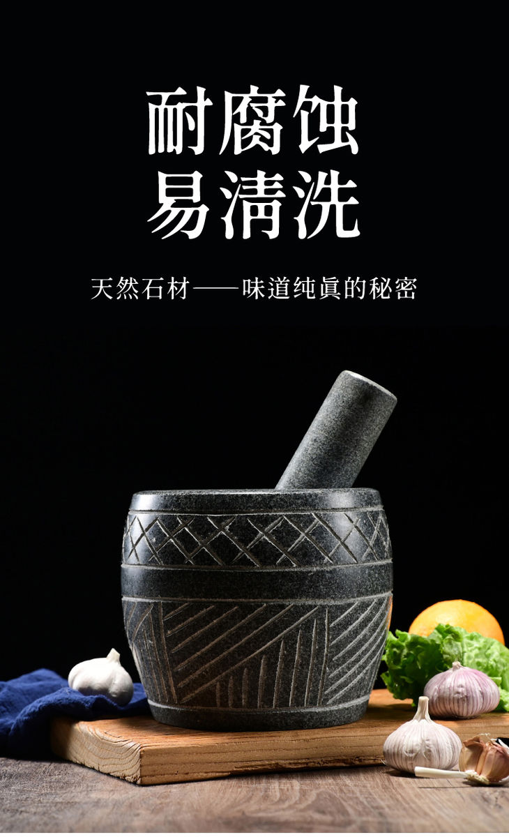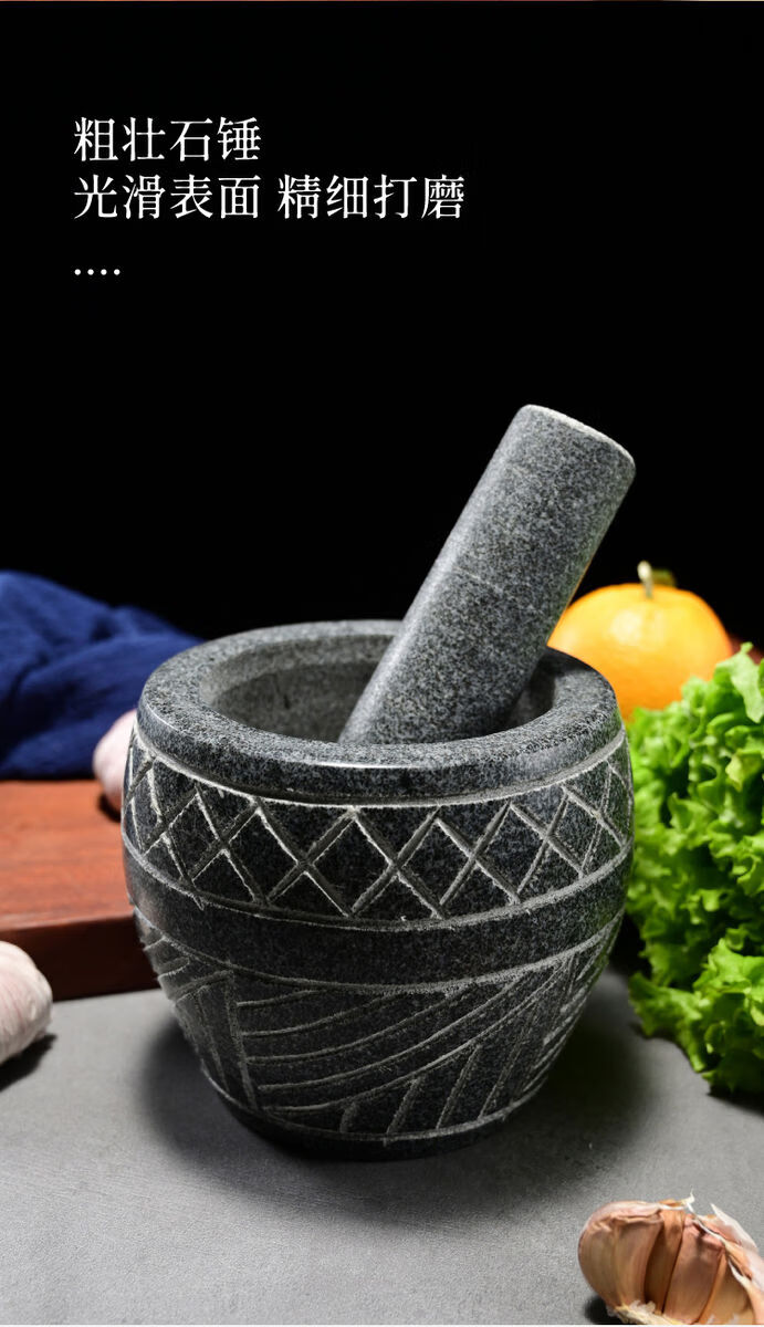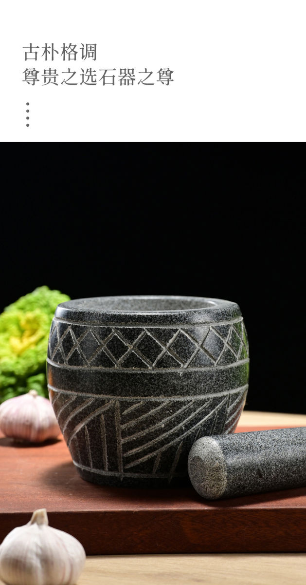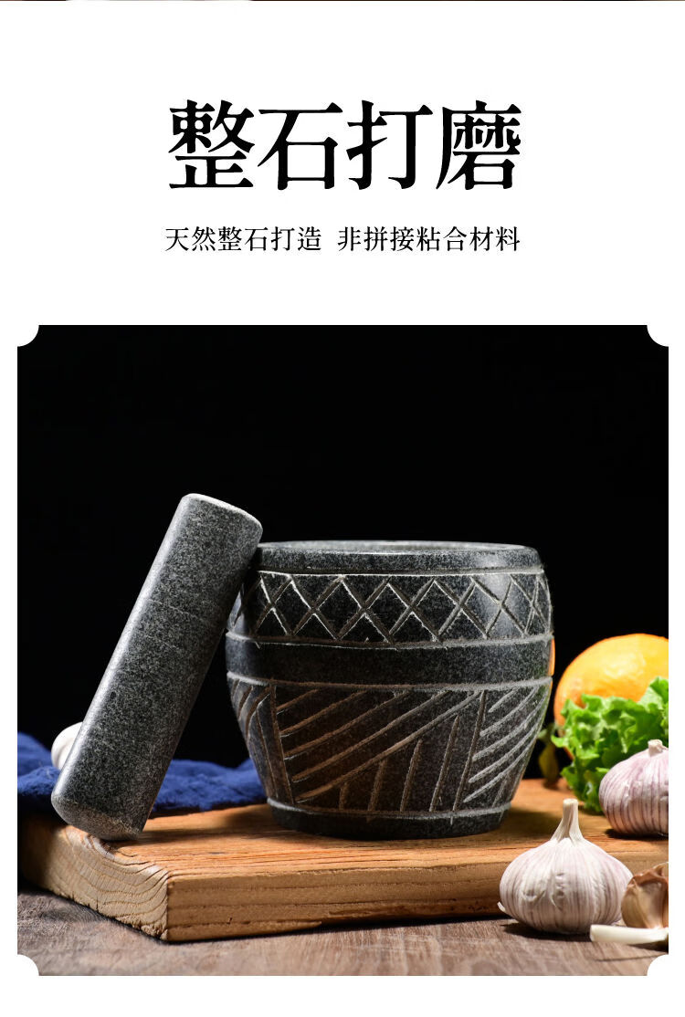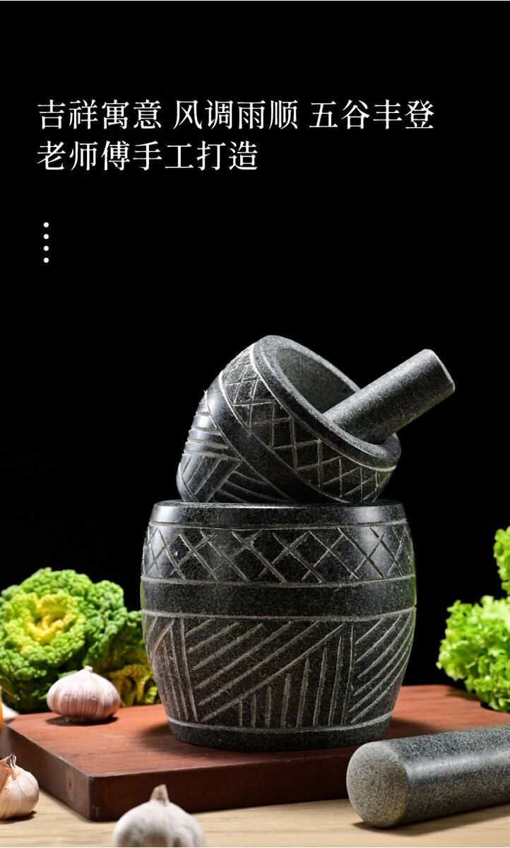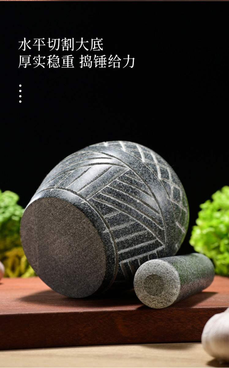 Fantasy large garlic pounder stone garlic mortar grinder stone mortar for pounding medicine, smashing pepper, peeling garlic and garlic press, hand-carved diameter 25 cm with wooden hammer