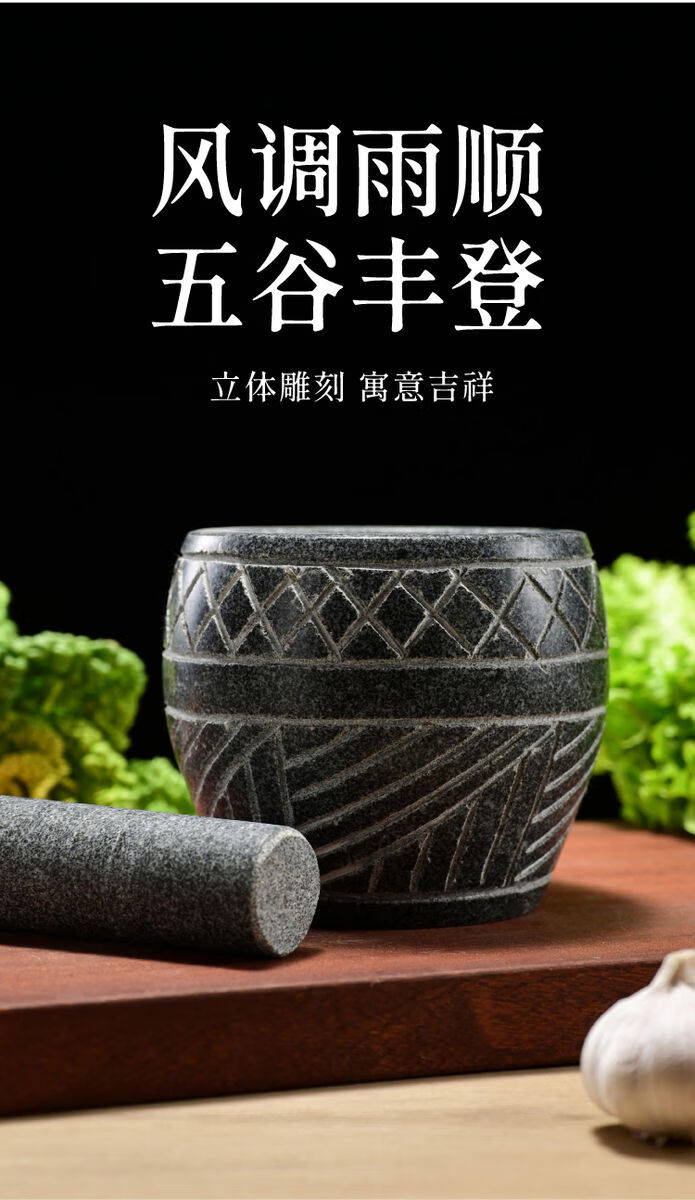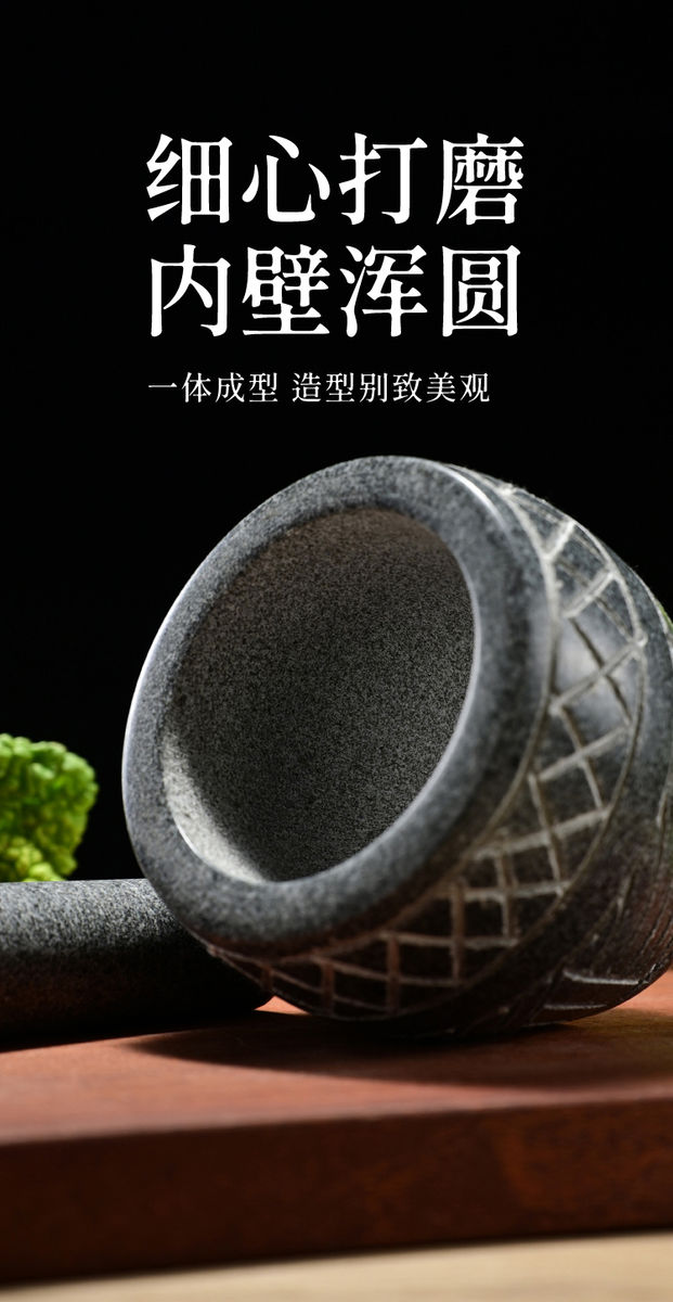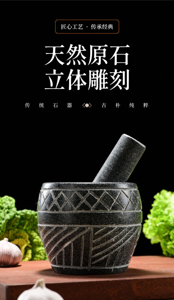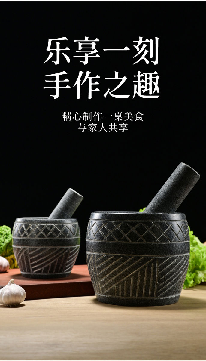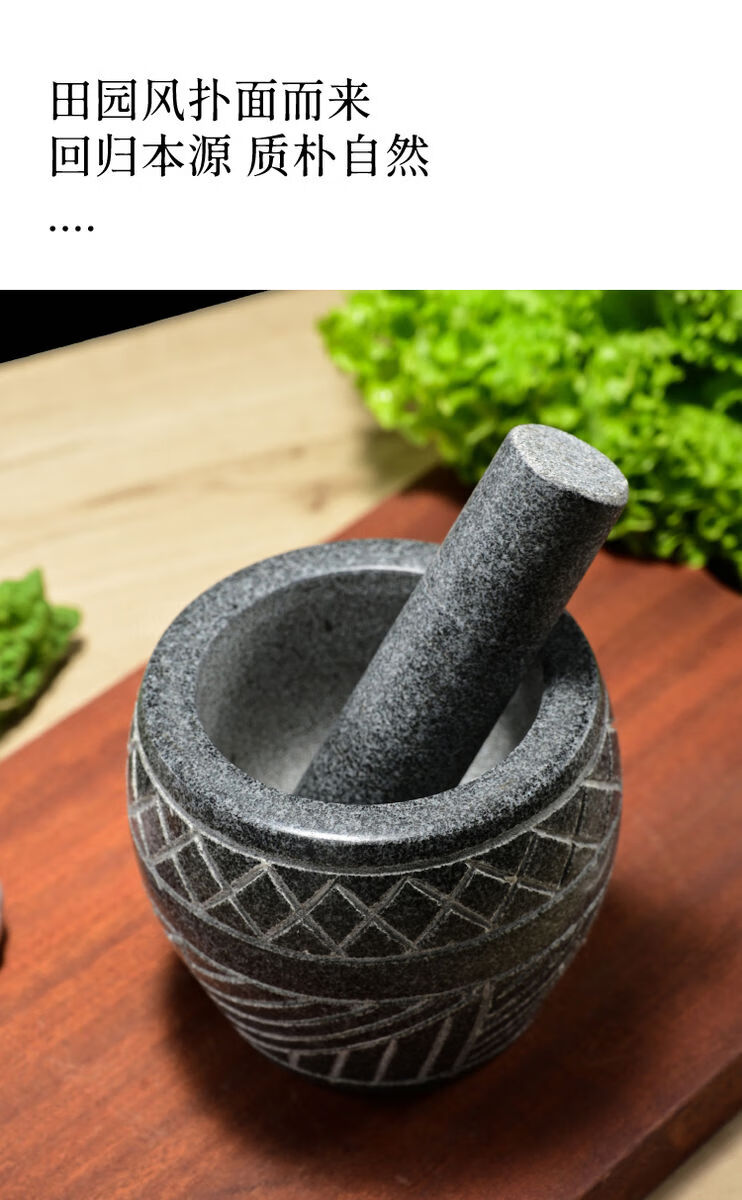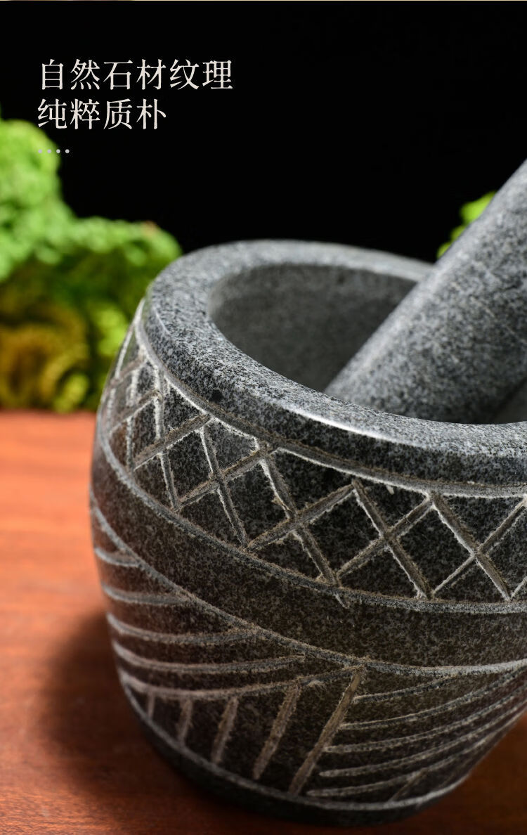 Fantasy large garlic pounder stone garlic mortar grinder stone mortar for pounding medicine, smashing pepper, peeling garlic and garlic press, hand-carved diameter 25 cm with wooden hammer