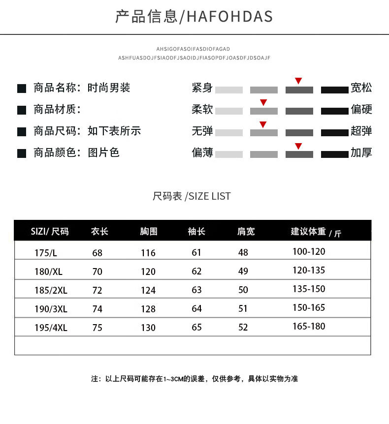 China (cm) 165 / 88-90 170 / 96-98 175 / 108-110 180 / 118-122 185 / 126-130