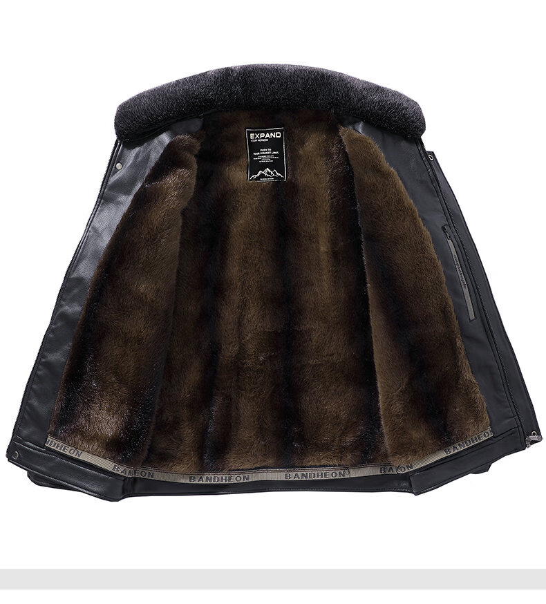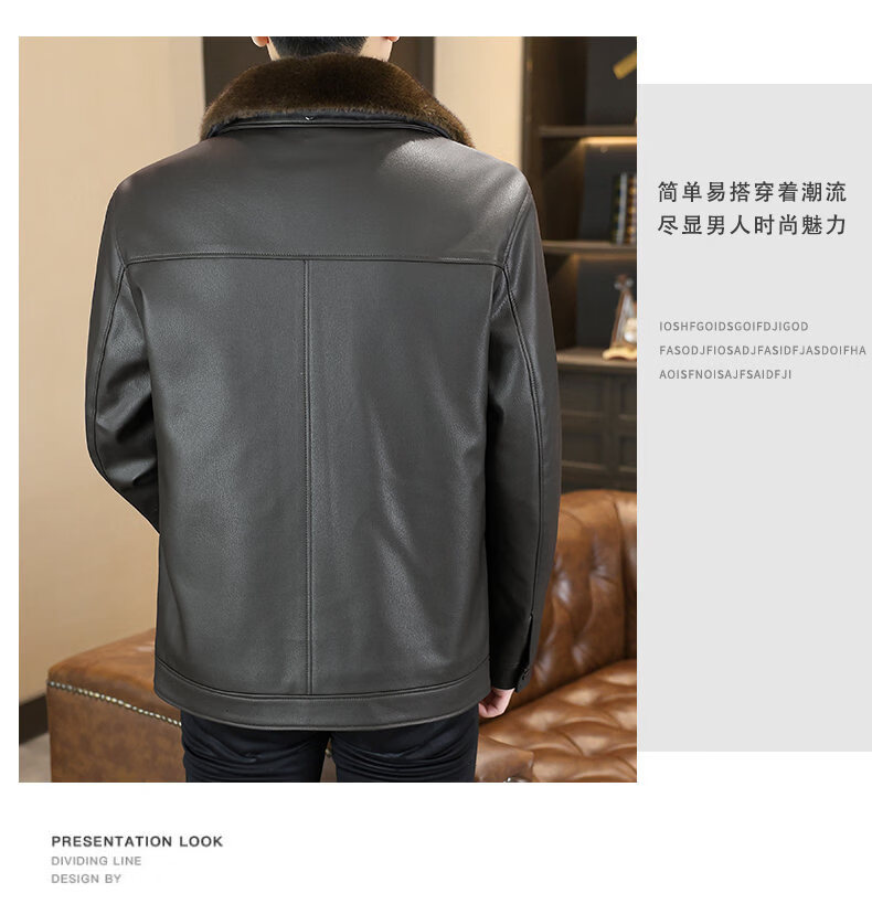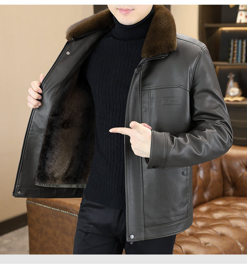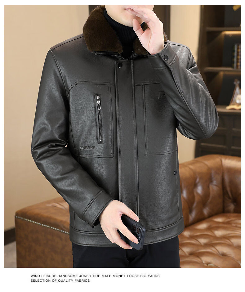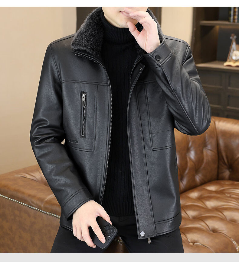 Jacket Men's Leather Jacket Velvet Thickened Removable Fur Collar Warm Leather Jacket Men's Windproof Handsome Top Versatile Black - Velvet XL Recommended 120-135 Jin Jin equals 0.5 kg