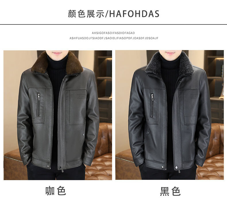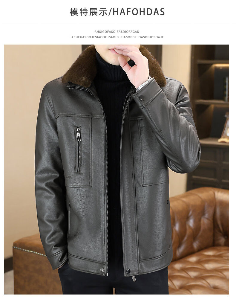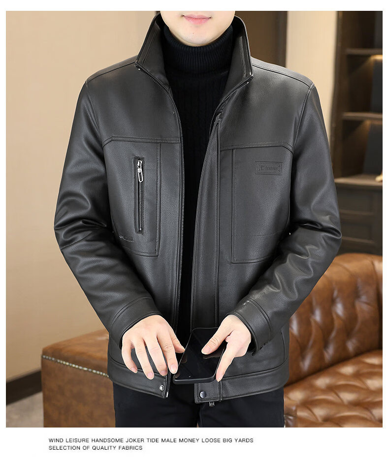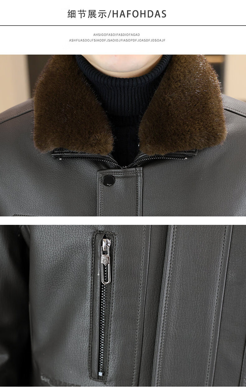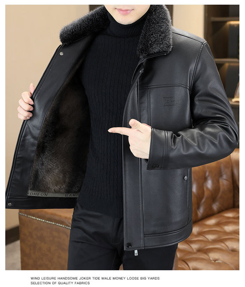 Jacket Men's Leather Jacket Velvet Thickened Removable Fur Collar Warm Leather Jacket Men's Windproof Handsome Top Versatile Black - Velvet XL Recommended 120-135 Jin Jin equals 0.5 kg