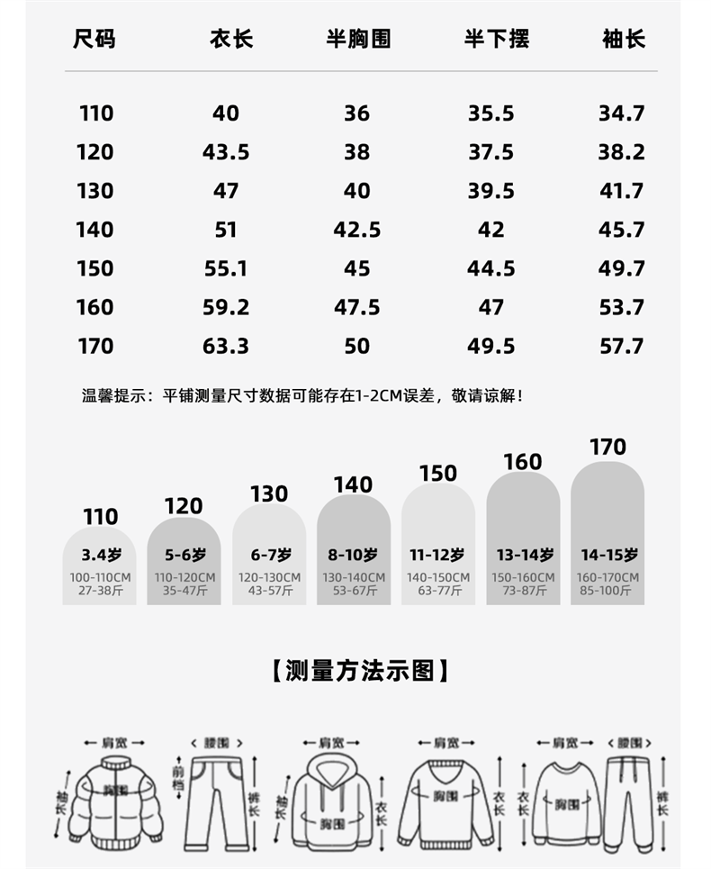 China (cm) 160-165/84-86 165-170 / 88-90 167-172 / 92-96 168-173 / 98-102 170-176 / 106-110