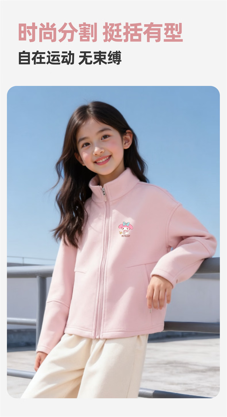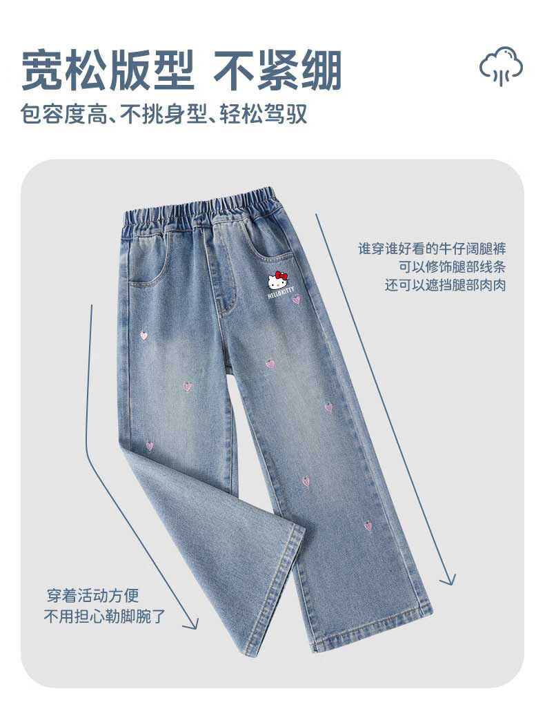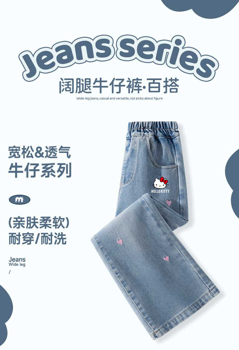Hello Kitty Melody Girls Spring Clothing Set 2026 New Girls Air Layer Jacket Jeans Children's Spring Two-piece Set Silicone Plinth Accompanying K Light Pink + Pelvic Accompanying K Sea Salt Blue 160 Recommended Weight 75-90Jin Jin is equal to 0.5 kg