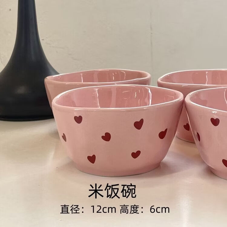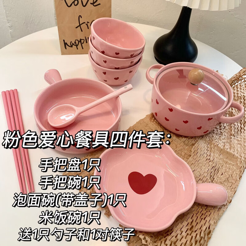 Chaosihui pink love food for one person internet celebrity high-looking ceramic tableware set household instant noodle bowl hand bowl spoon combination 2024 pink love food combination for two people gift box 2025