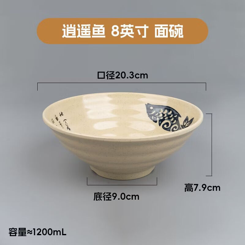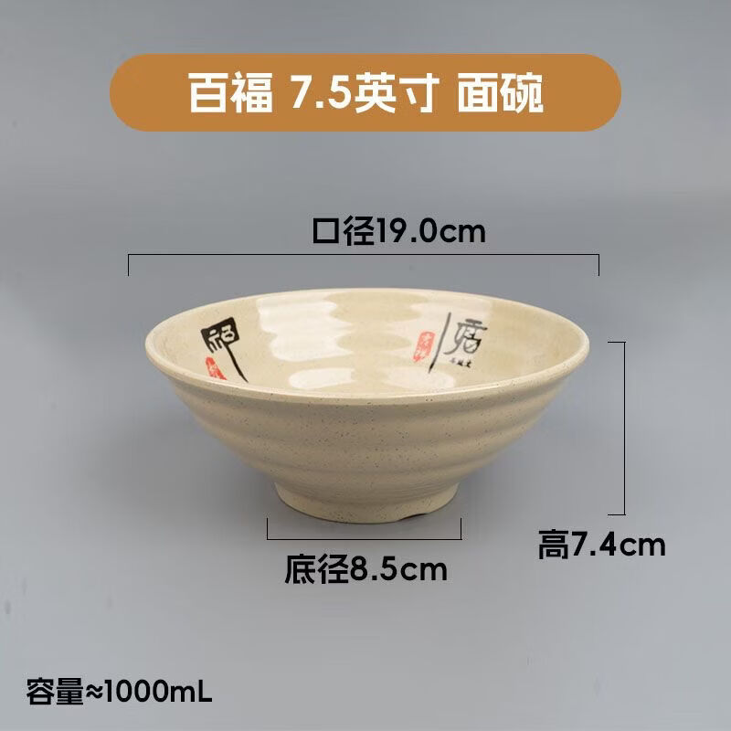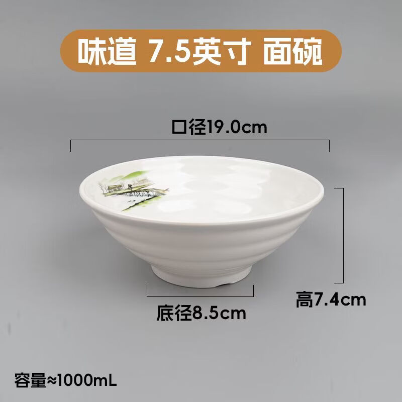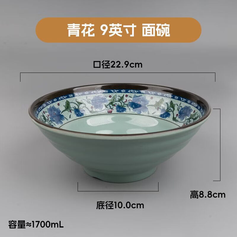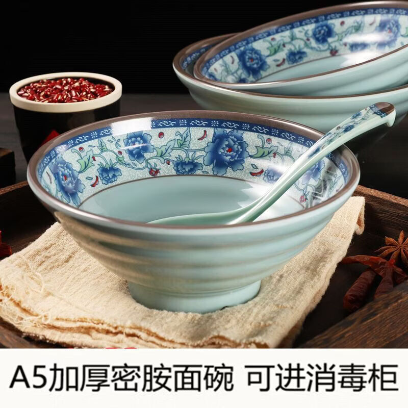 Chaosihui melamine ramen bowl commercial bowl restaurant restaurant soup noodle bowl Malatang restaurant anti-fall imitation porcelain soup bowl rice noodle bowl 2024 blue and white 2025 8.5 inches - extra thick style 10 pieces
