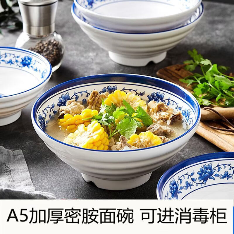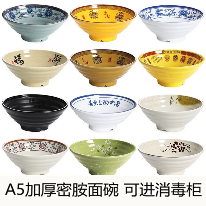 Chaosihui melamine ramen bowl commercial bowl restaurant restaurant soup noodle bowl Malatang restaurant anti-fall imitation porcelain soup bowl rice noodle bowl 2024 Jinbao 2025 9 inches - extra thick style 10 pieces