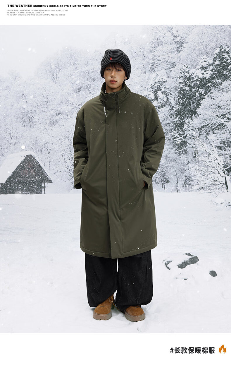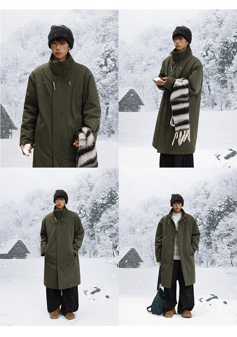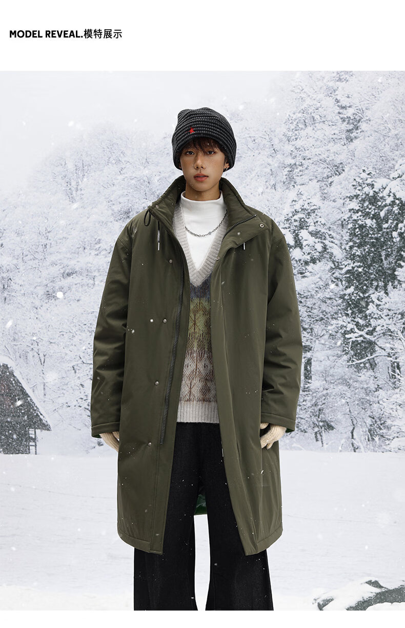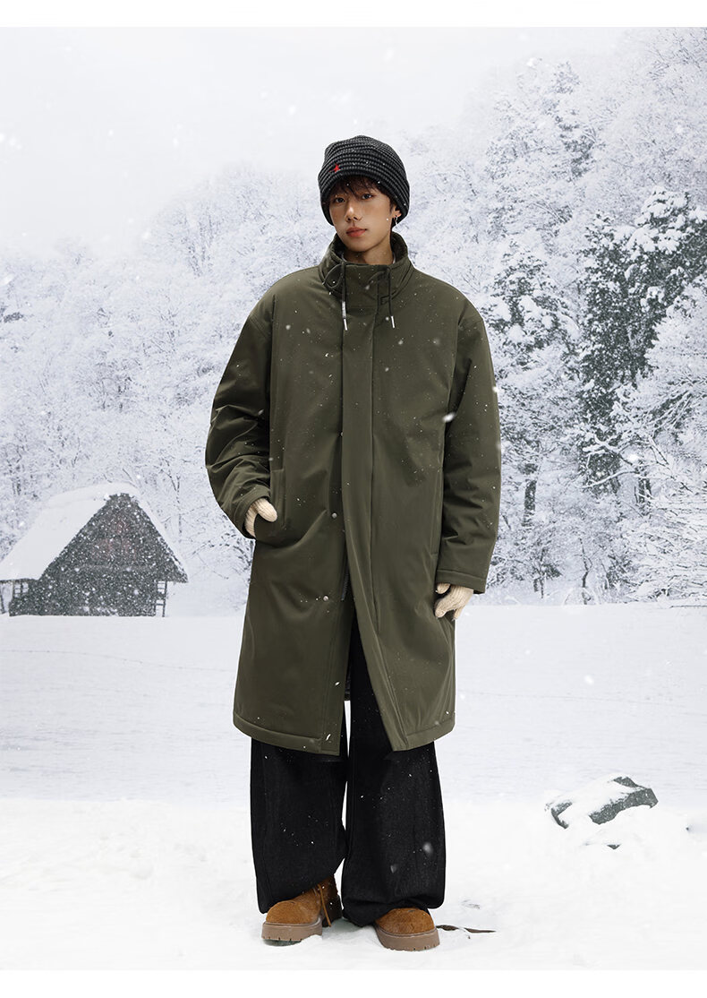 Shelley Jones mid-length knee-high army green coat cotton men's winter new thickened warm jacket jacket clothing dark olive green XL recommended 125-135Jin Jin equals 0.5 kg