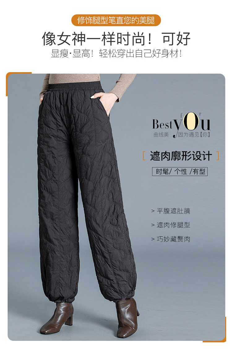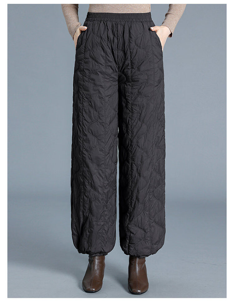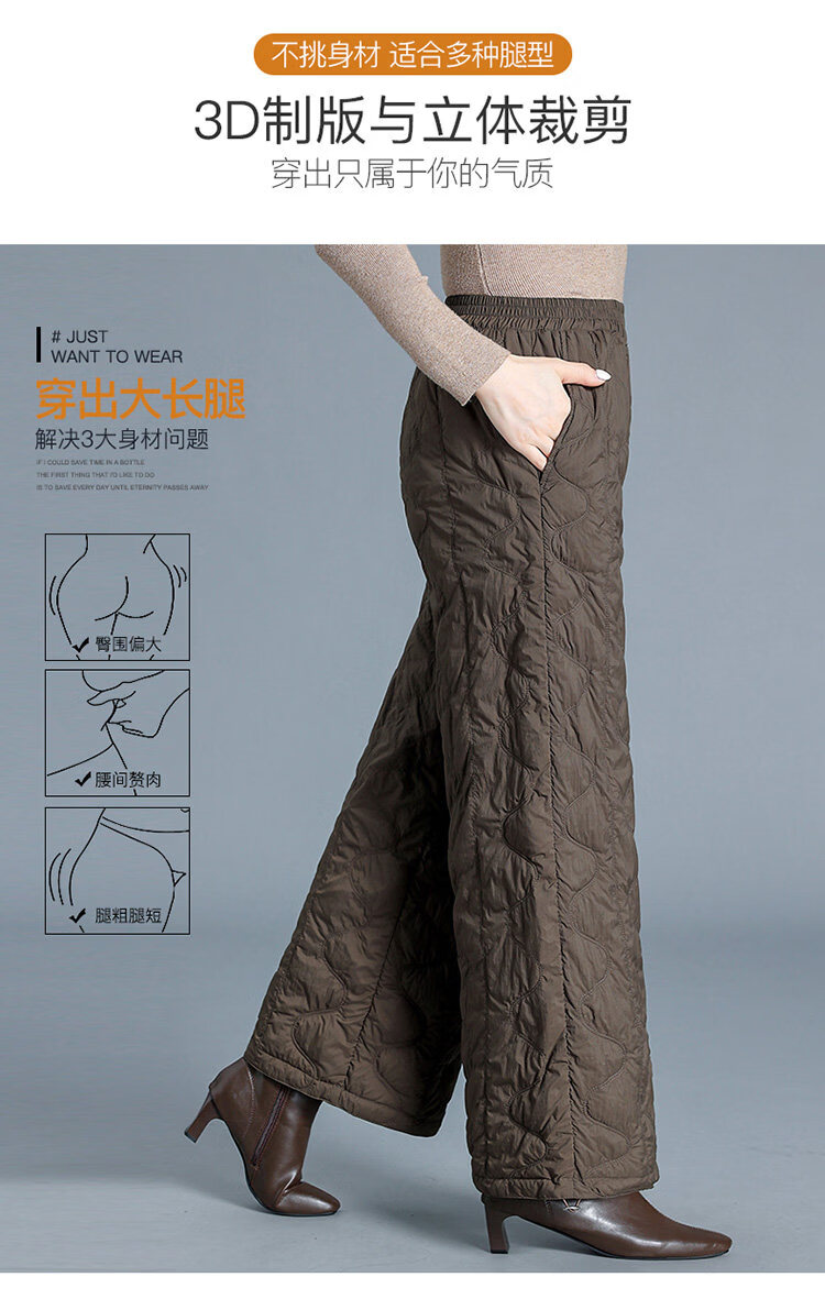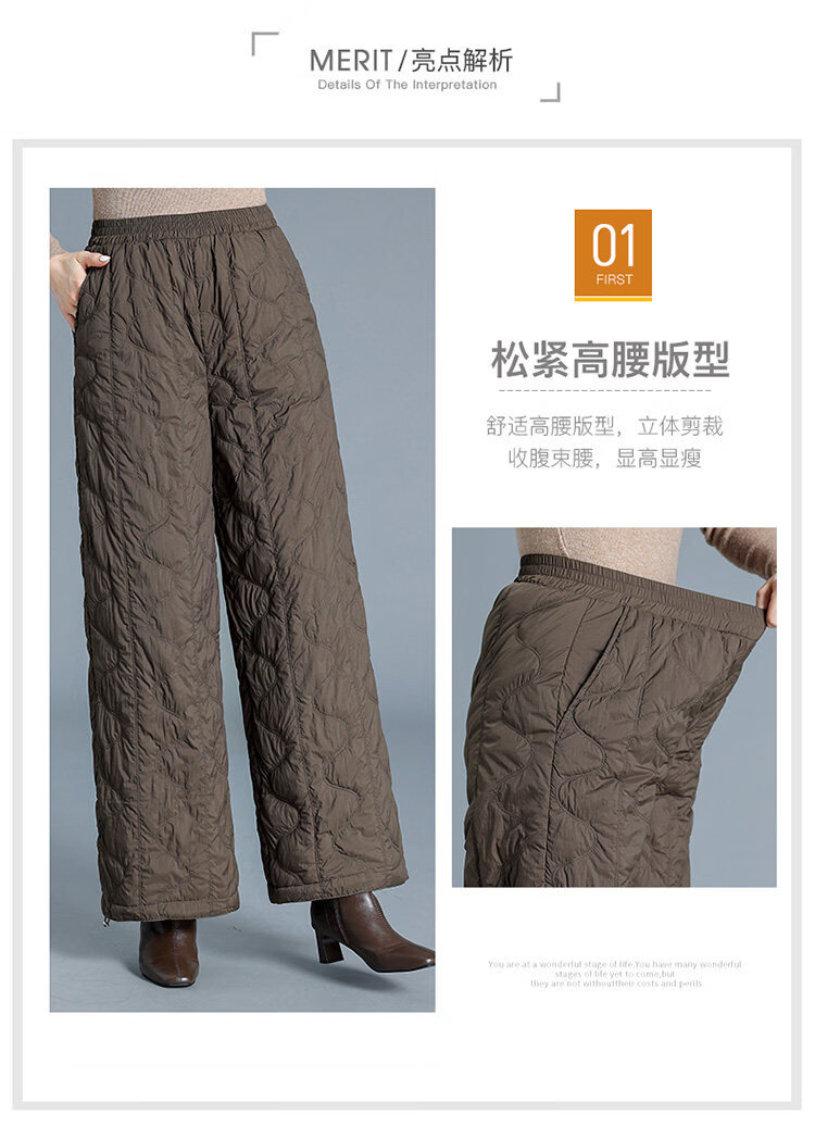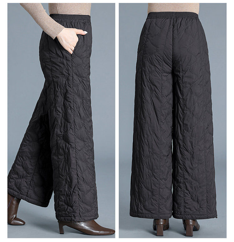 Woodpecker Down Pants Women's Winter Outerwear Fashion New Middle-Aged High Waisted Wide Leg Pants Loose Mom Winter Pants Lightweight Black Thin M
