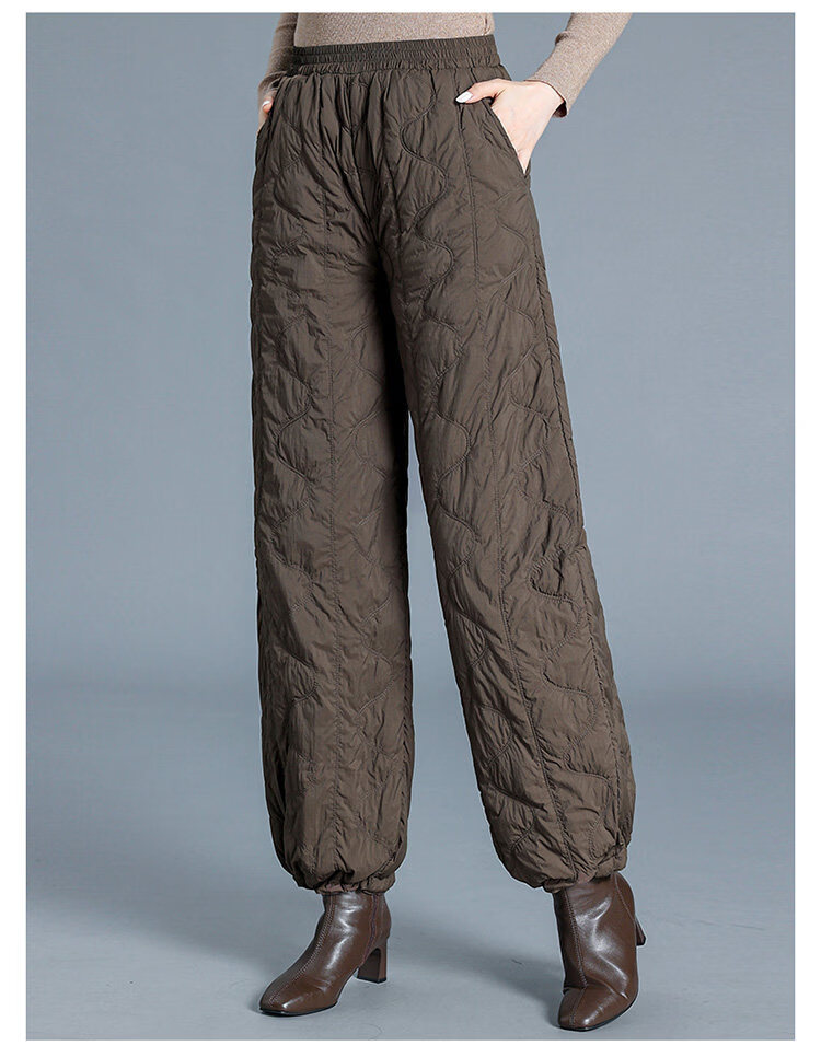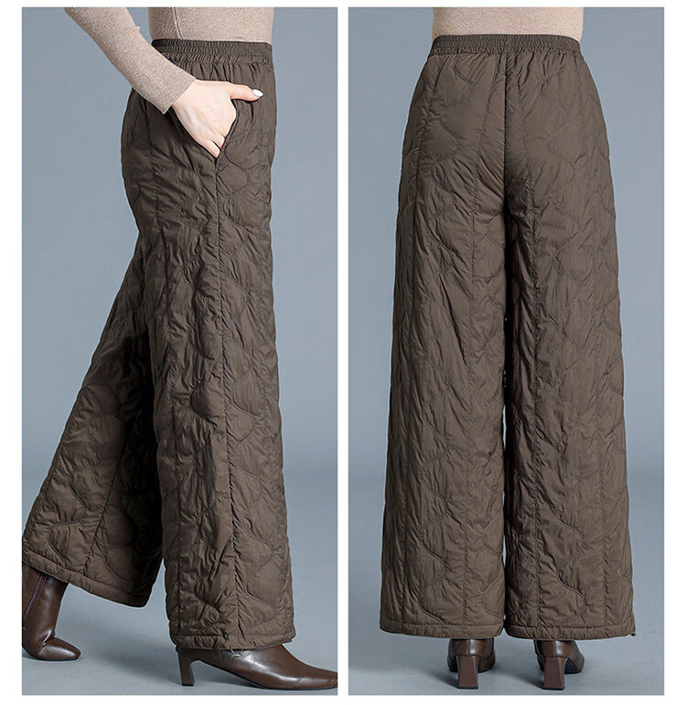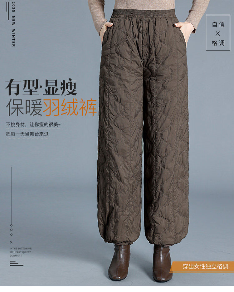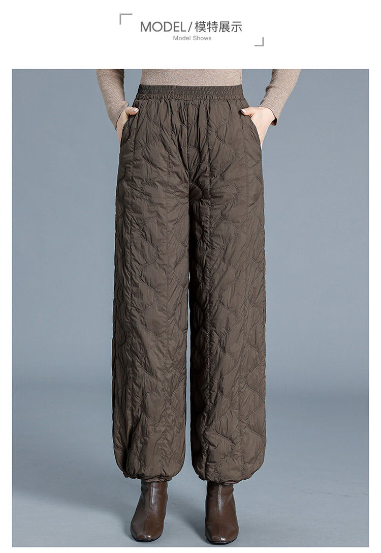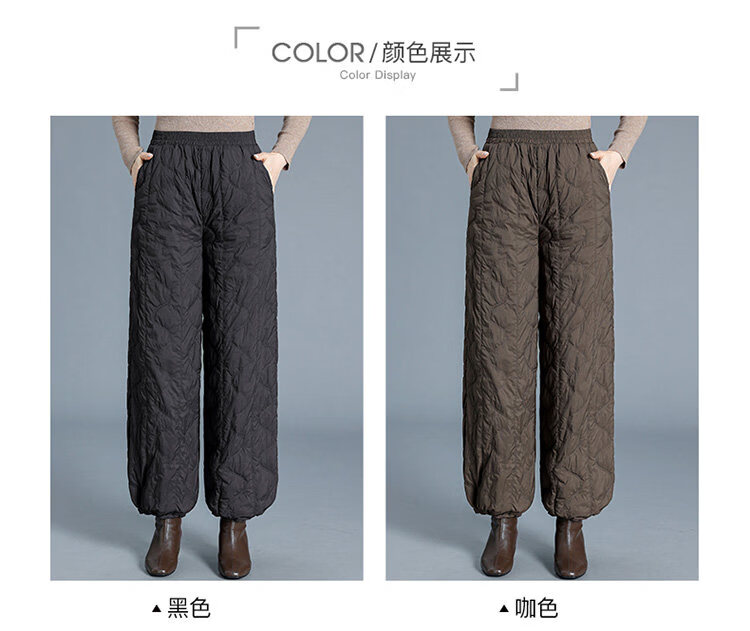 Woodpecker Down Pants Women's Winter Outerwear Fashion New Middle-Aged High Waisted Wide Leg Pants Loose Mom Winter Pants Lightweight Black Thin M