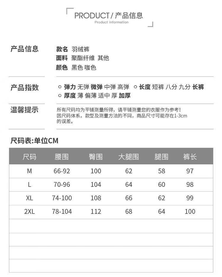 Outseam (cm) 99 cm 101.5 cm 104 cm 106.5 cm 109 cm
