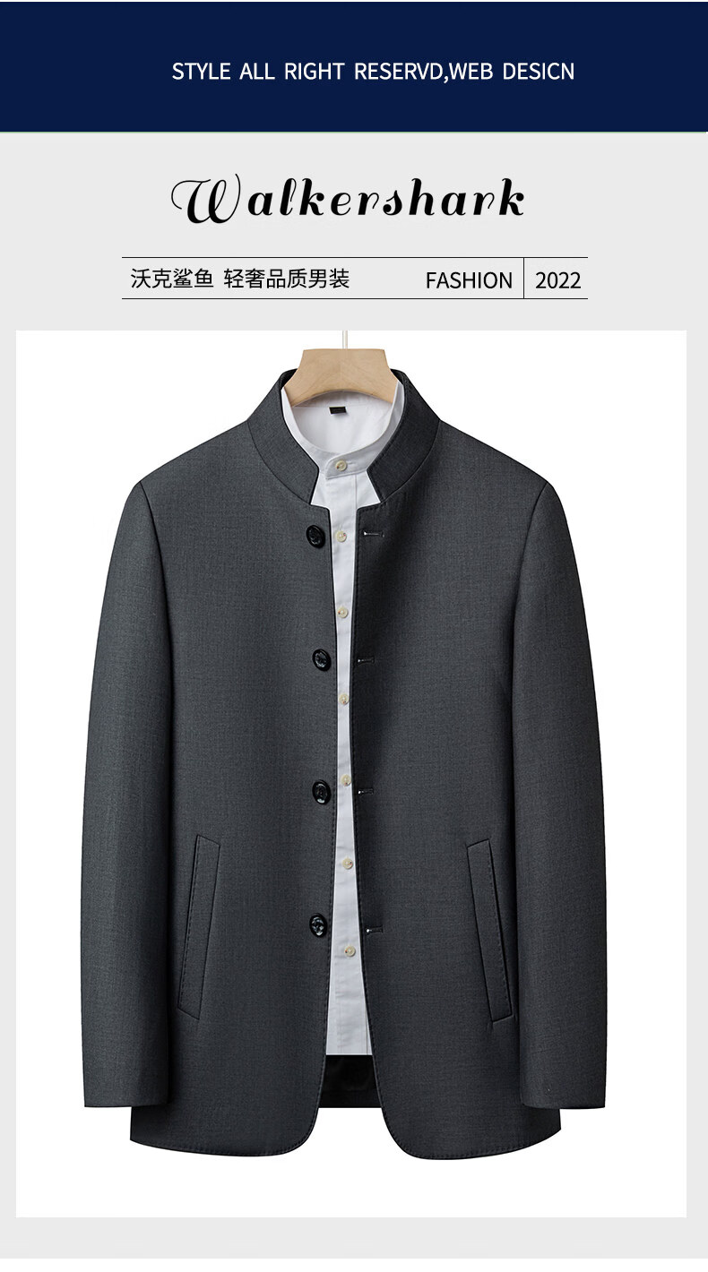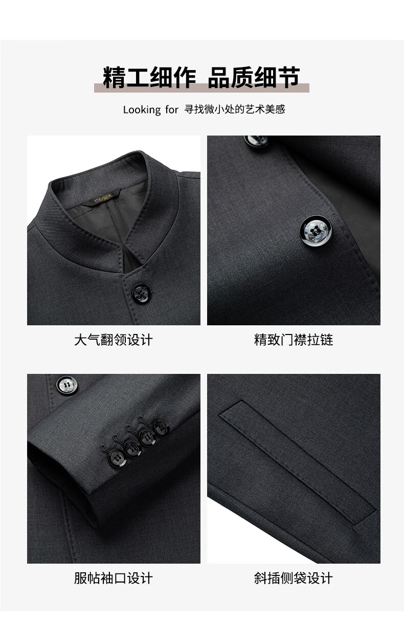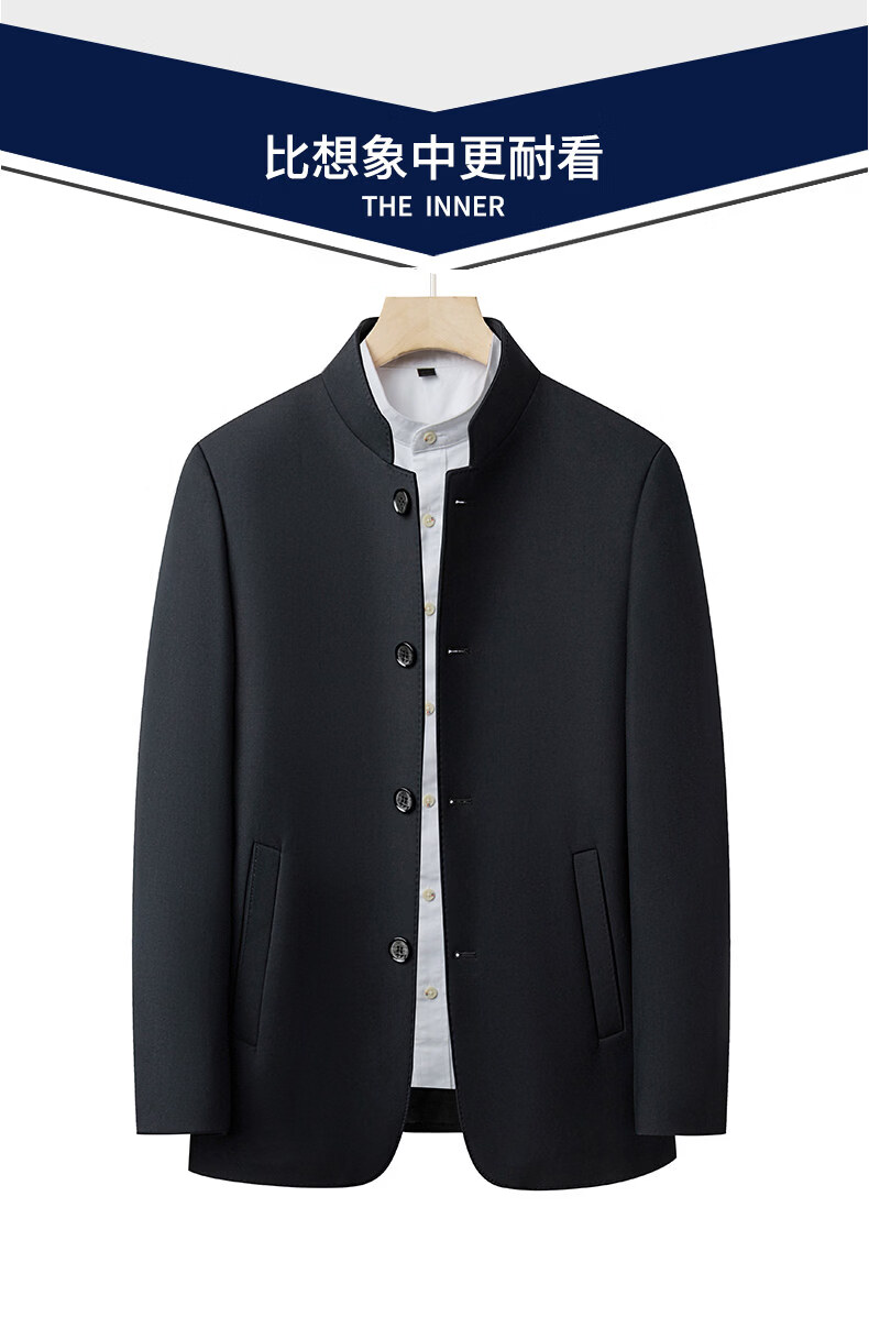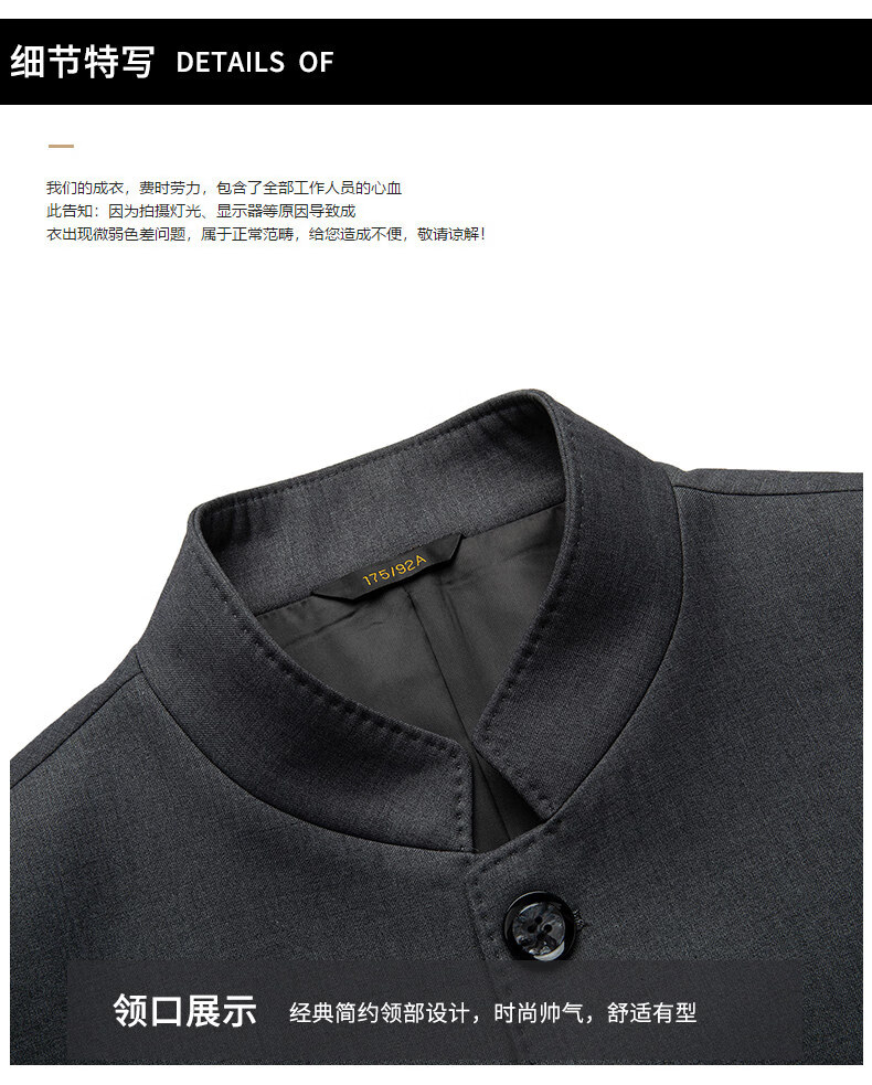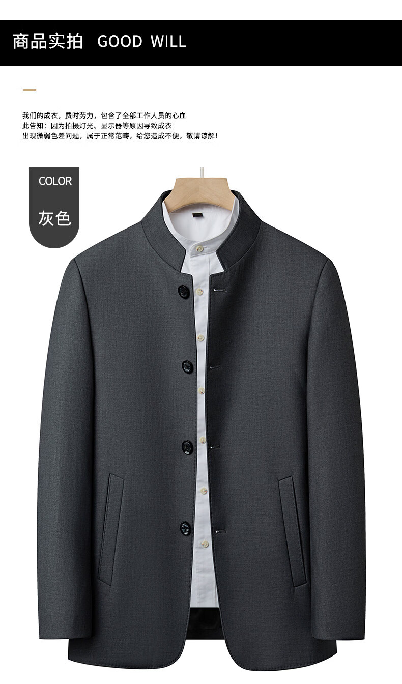 KBXNG Jinba middle-aged men's jacket high-end Chinese style spring and autumn business casual stand collar men's dad wedding banquet tunic gray M 170