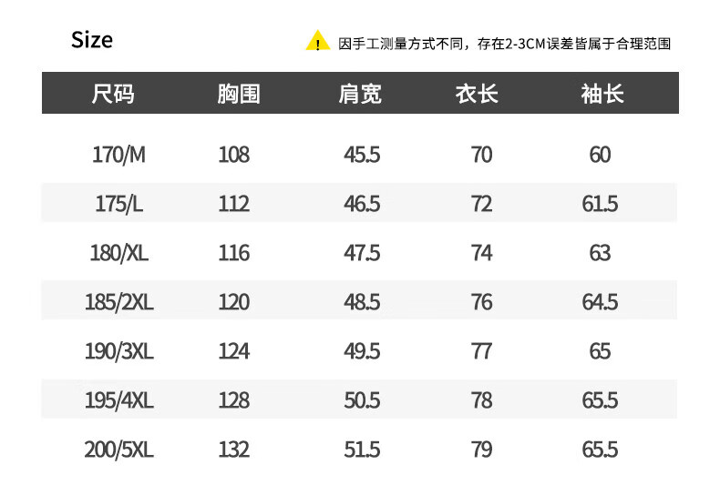 China (cm) 165 / 88-90 170 / 96-98 175 / 108-110 180 / 118-122 185 / 126-130