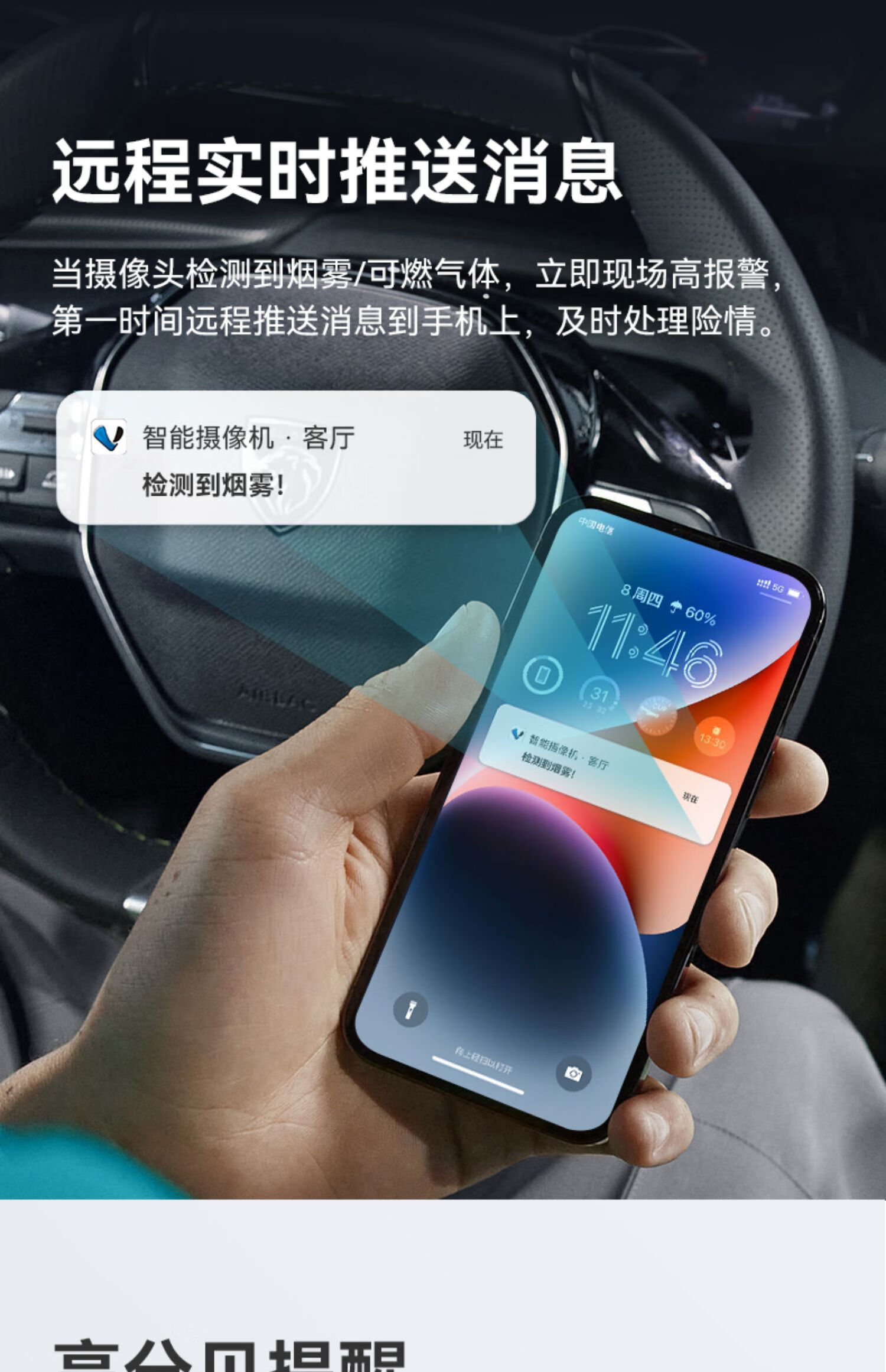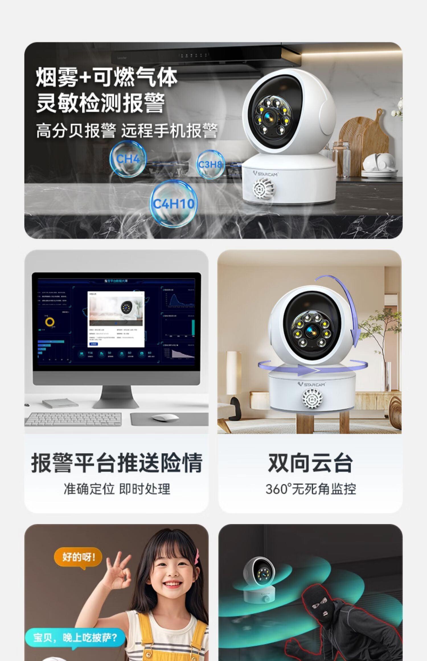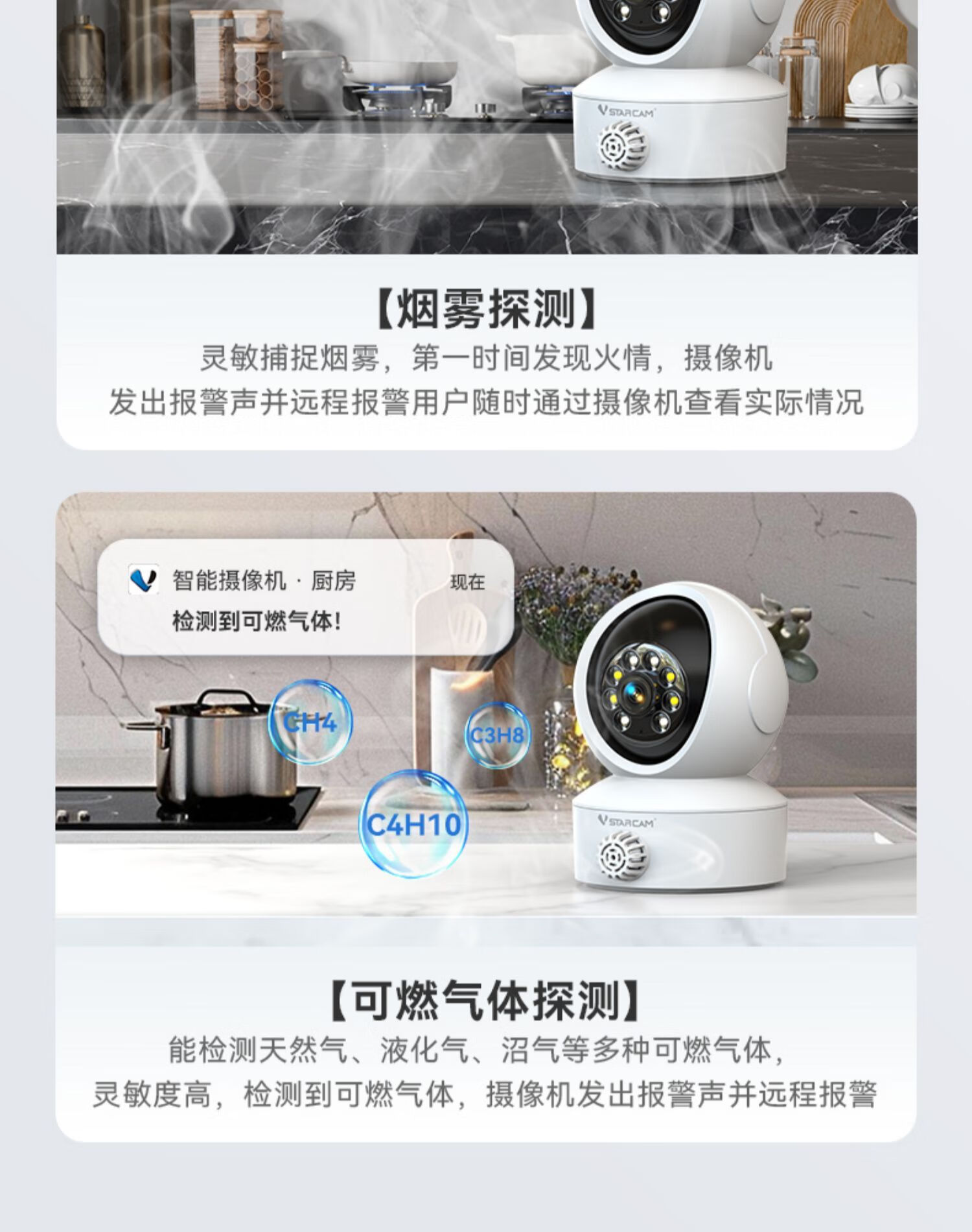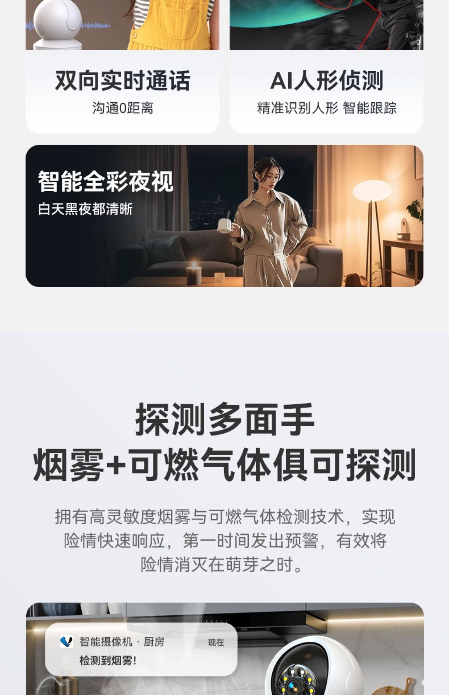 KOWSI Kitchen Smoke Alarm Home Connected Mobile Phone Smoke Detector Remote Monitoring Camera Caregiver for the Elderly Living Alone Upgraded Upgraded WiFi Version Smoke Detection + Combustible Gas Detection + Humanoid Detection 32GB 5 million pixels 4mm