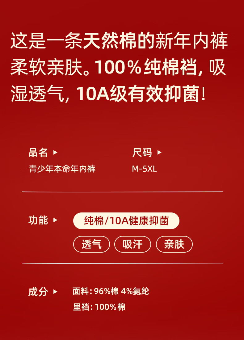 Cat Man (MiiOW) Youth Underwear Boys Cotton A Type Cotton Red Zodiac Year Boys Boys Children Development Period Square Corners 96074+96075+96076 Instant Success 6/Pack 170 M Code 70-90Jin Jin is equal to 0.5 kg