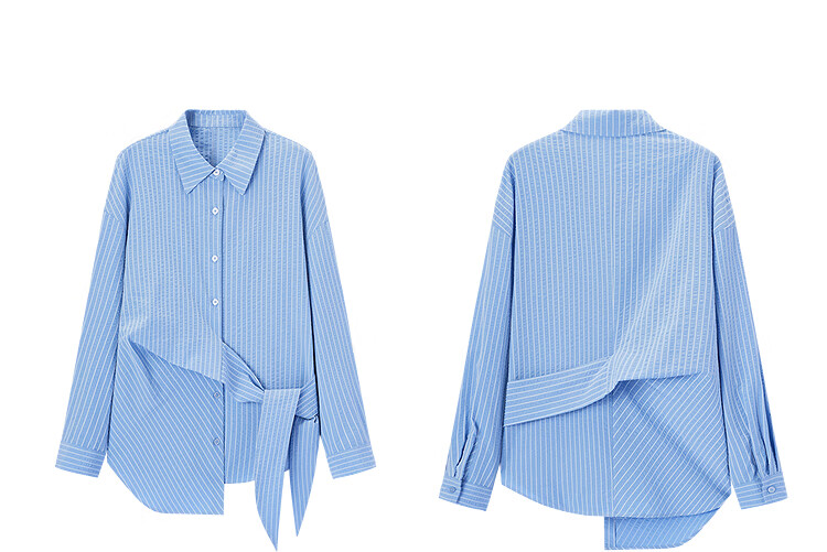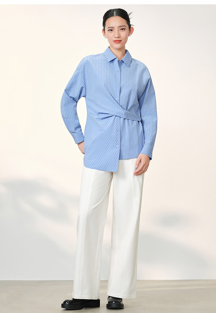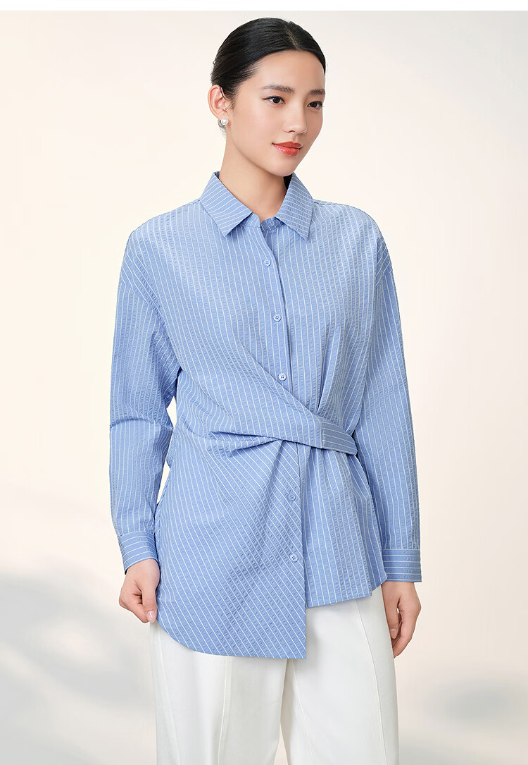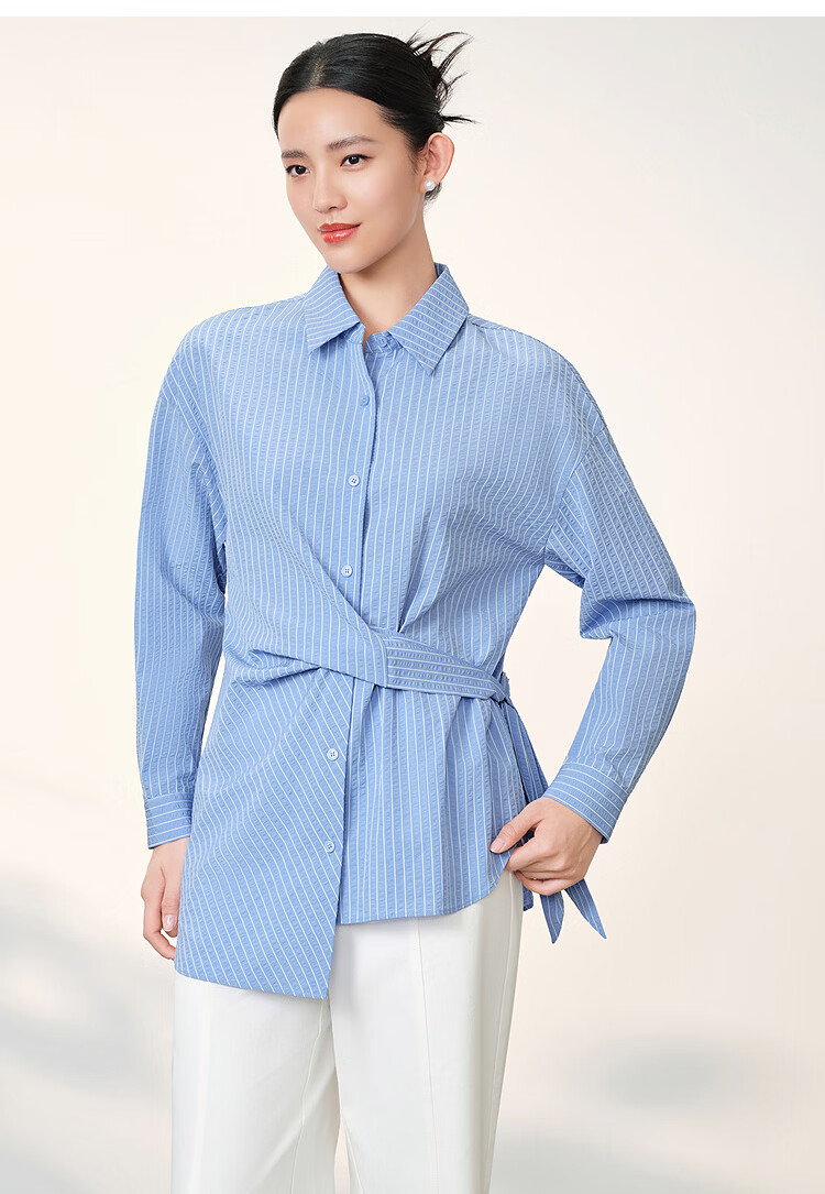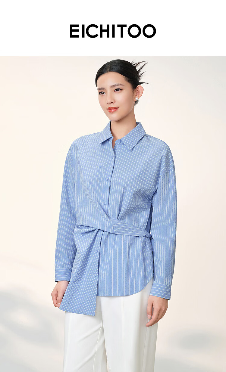 EICHITOO Classic Striped Shirt Women's 2026 Spring New Waist Commuting Casual Long-Sleeved Top ENEAJ1R008A Light Blue 09 S