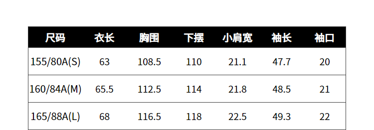 China (cm) 160-165/84-86 165-170 / 88-90 167-172 / 92-96 168-173 / 98-102 170-176 / 106-110