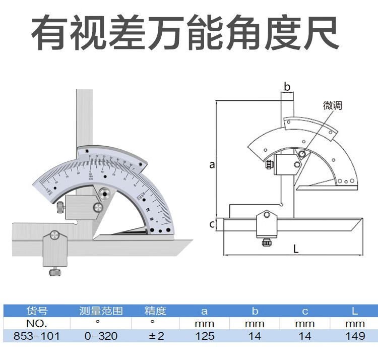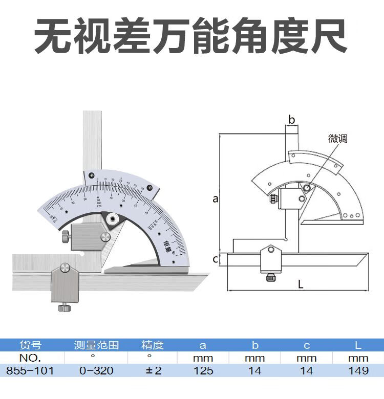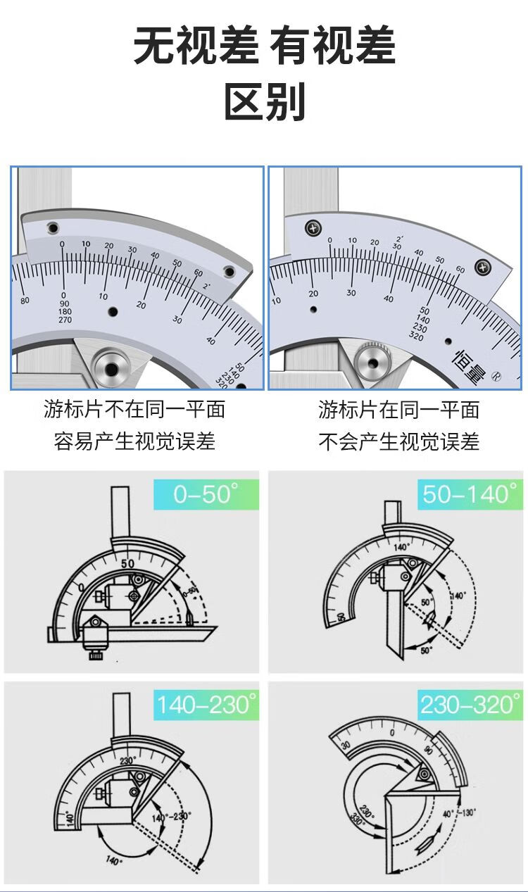 Angle ruler protractor angle gauge angle meter measuring tool 0320 degree angle caliper without parallax 320