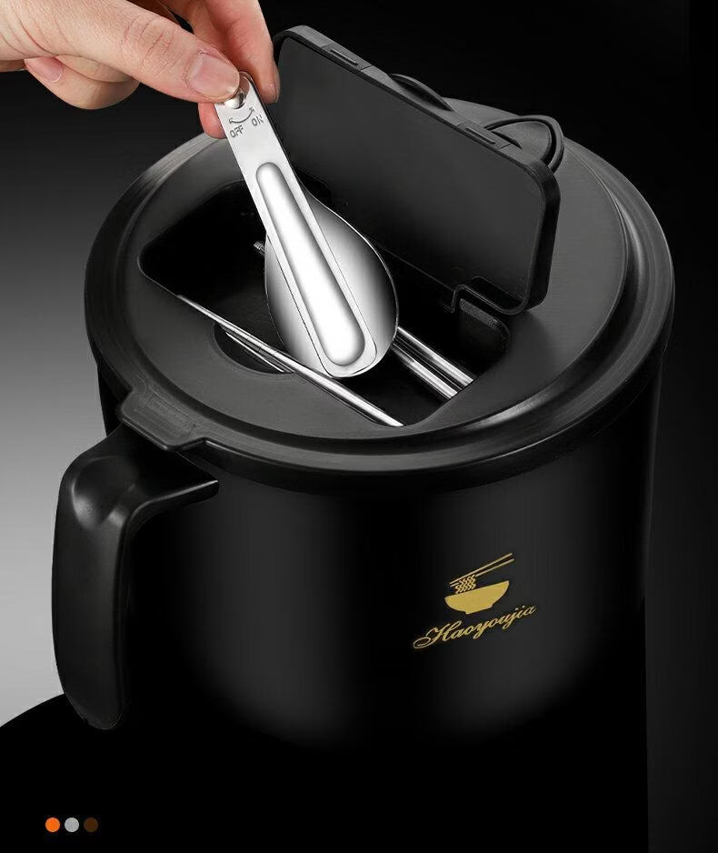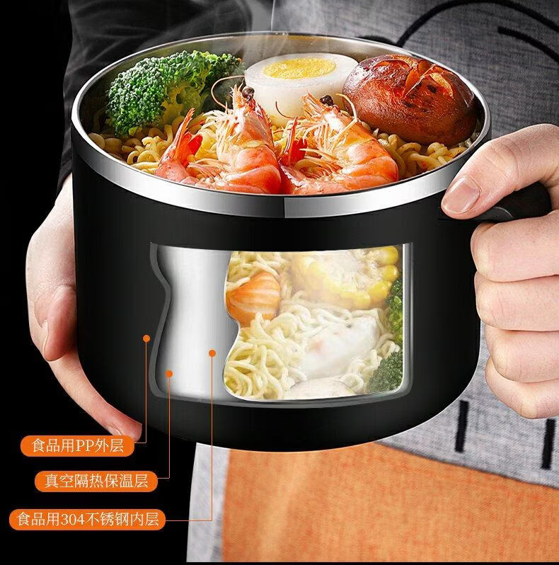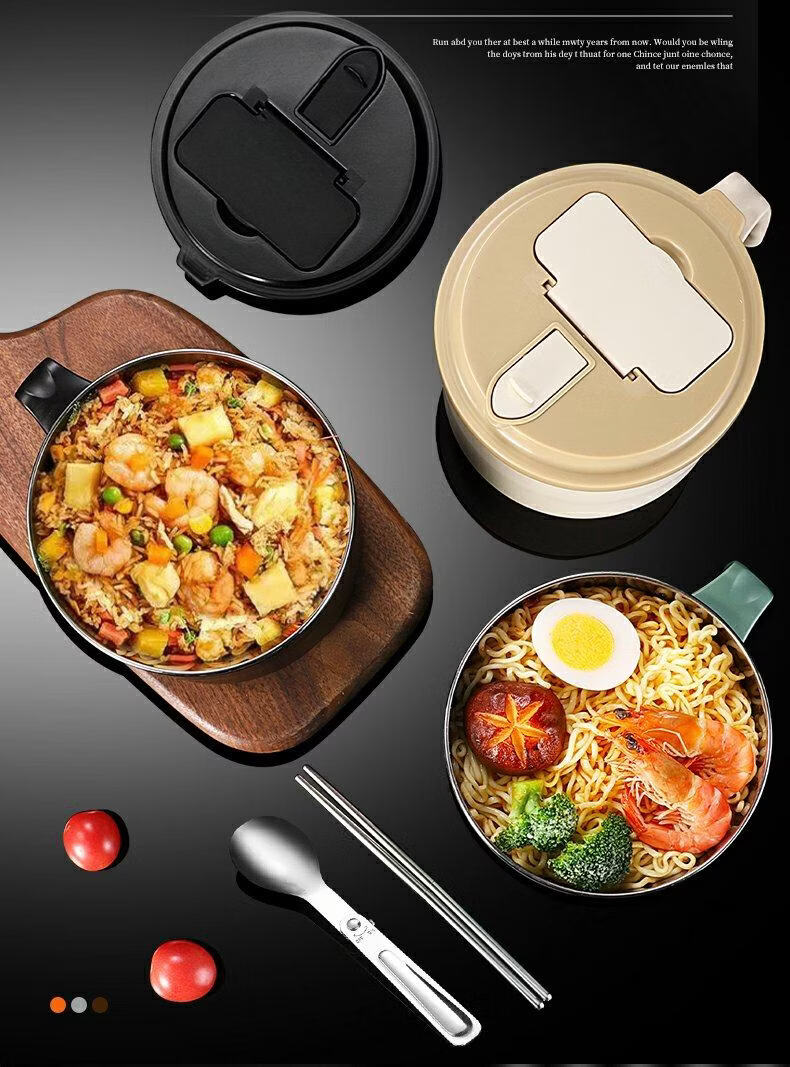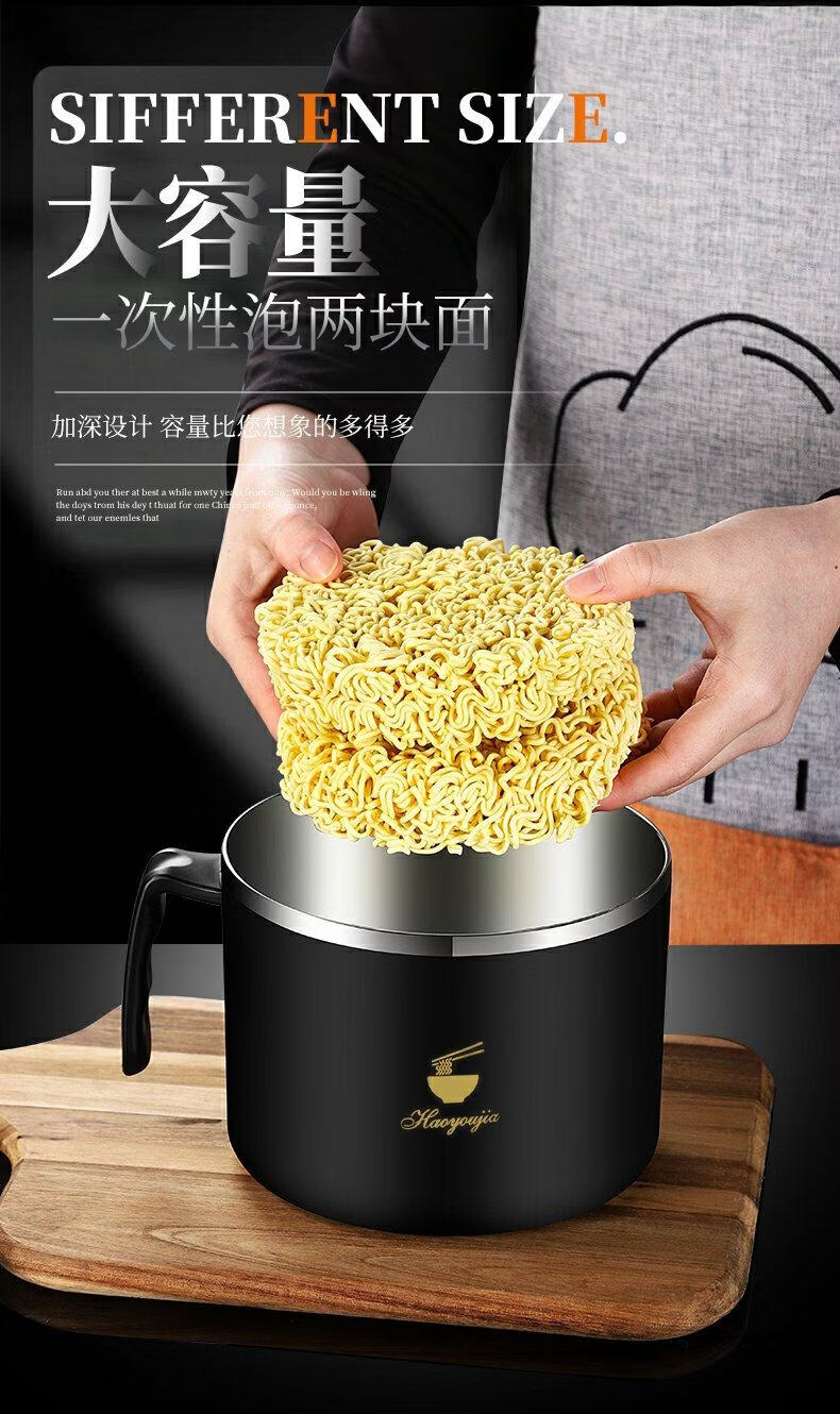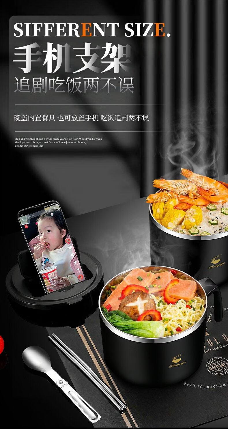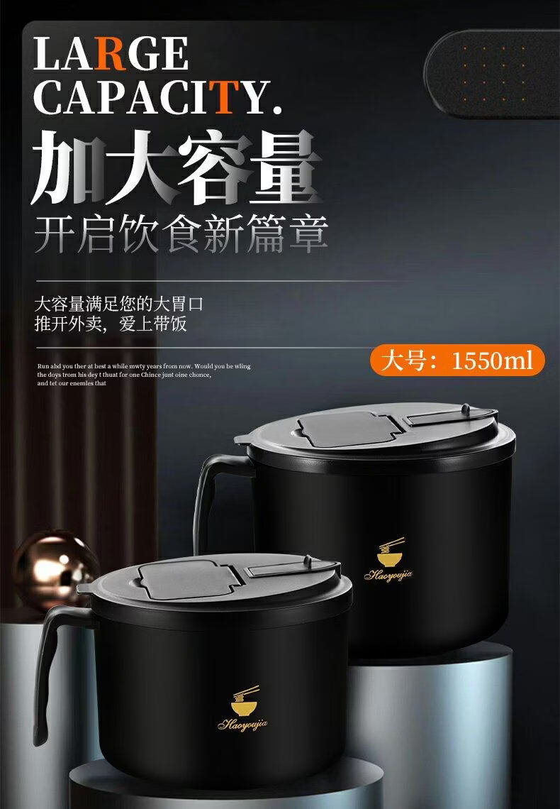 Tuojin imported high-quality instant noodles from Japan, stainless steel noodle bowl for student dormitories, with lid, large capacity for personal use, free tableware - extra large, noble black, can soak 3 packs