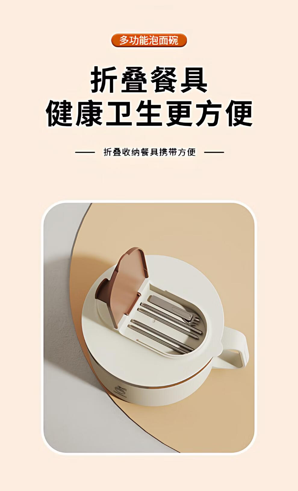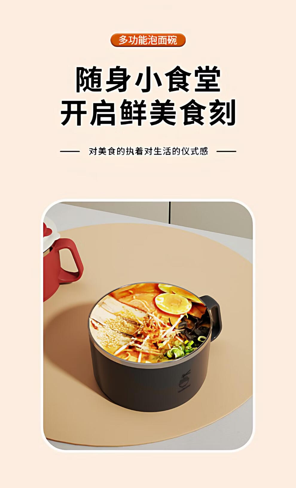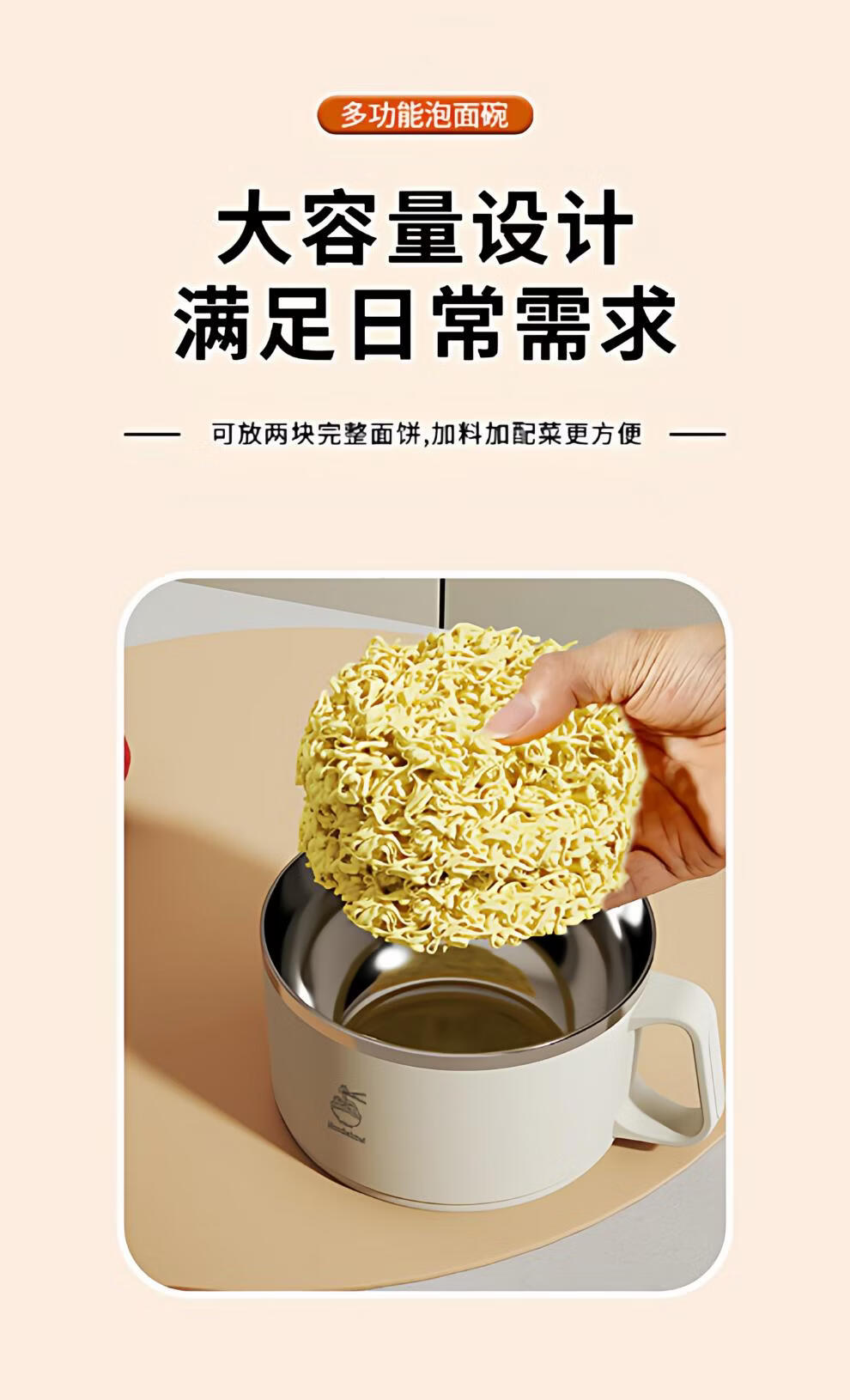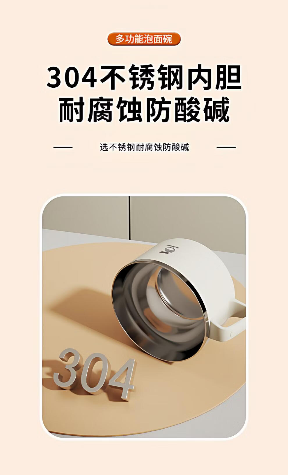 Tuojin imported high-quality instant noodle bowl from Japan 304 stainless steel dormitory student with lid, high-looking, large-capacity, food-grade drain, cream white, heat-insulated and anti-scalding, food-grade 304 steel 1100ml