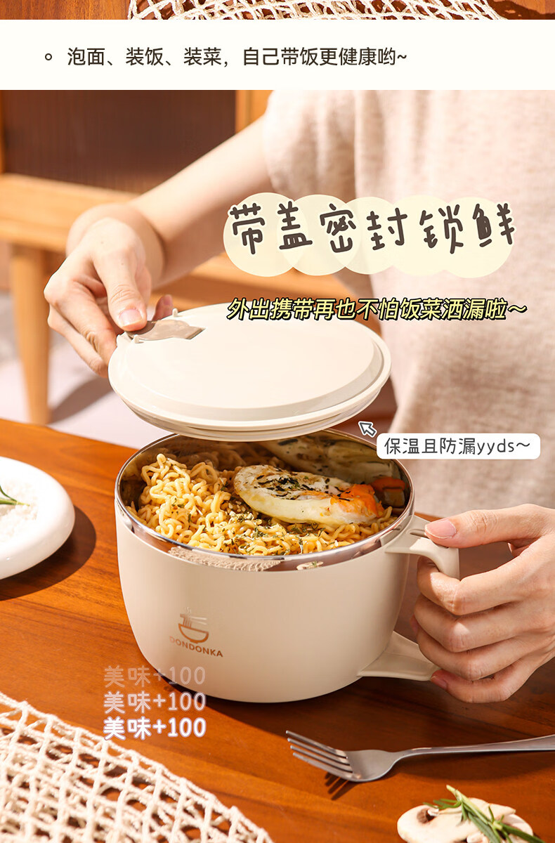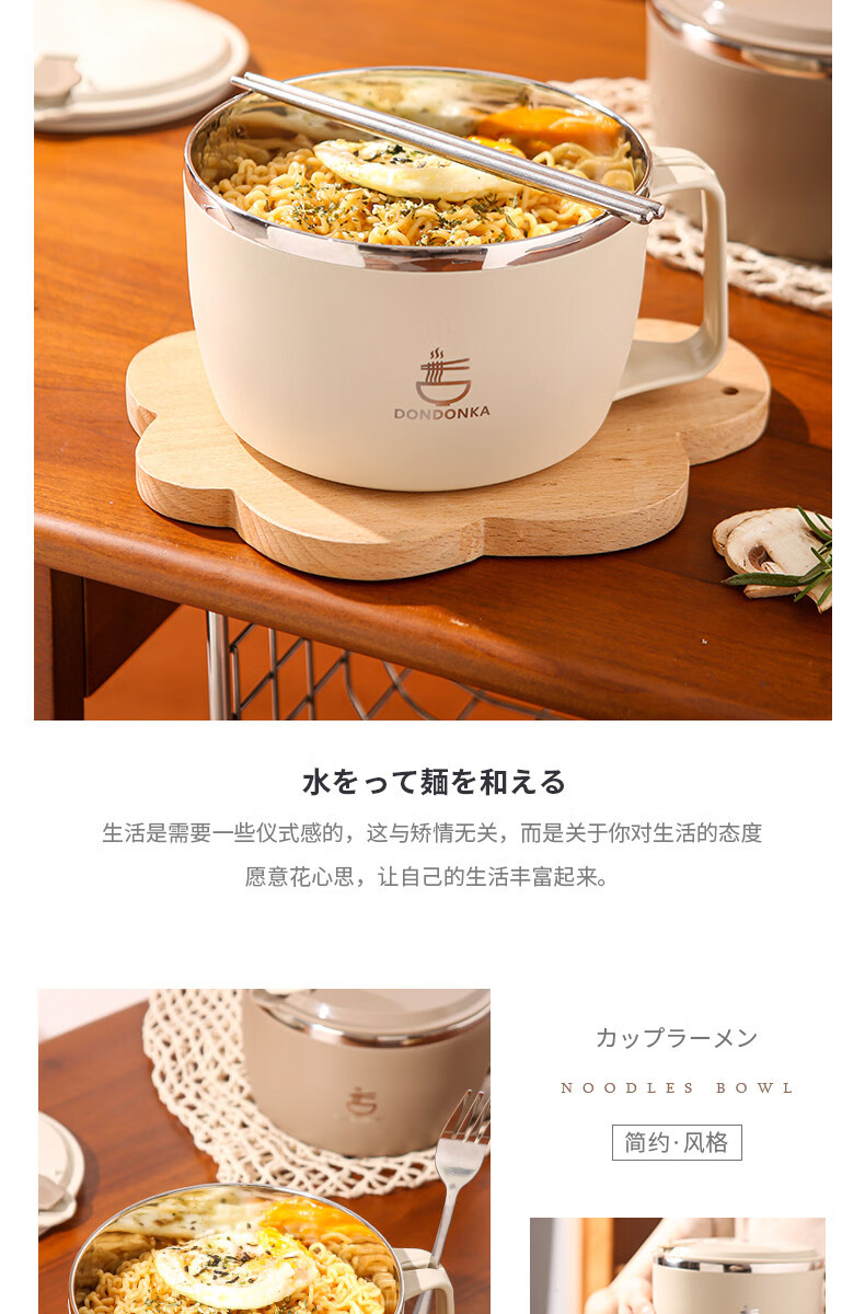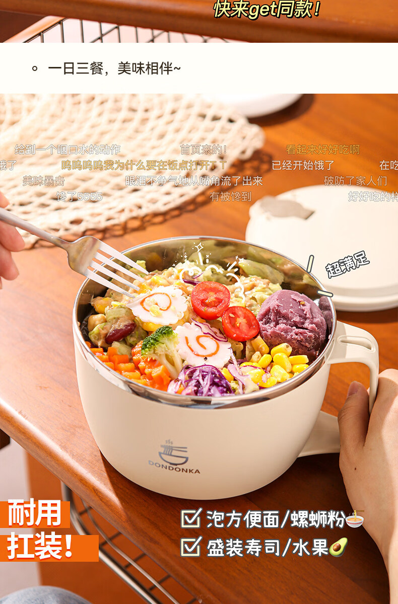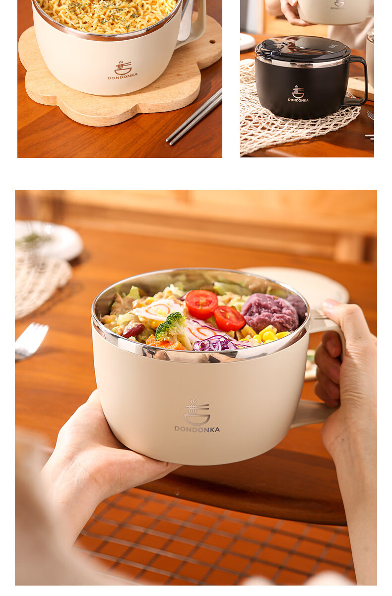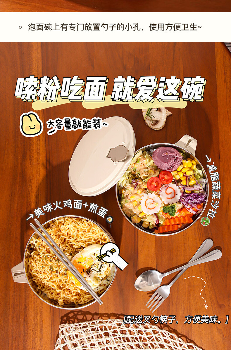 Tuojin Japan imported quality instant noodles noodle bowl for dormitory students with lid to drain Japanese instant noodles noodle artifact stainless off-white + tableware 1000ml